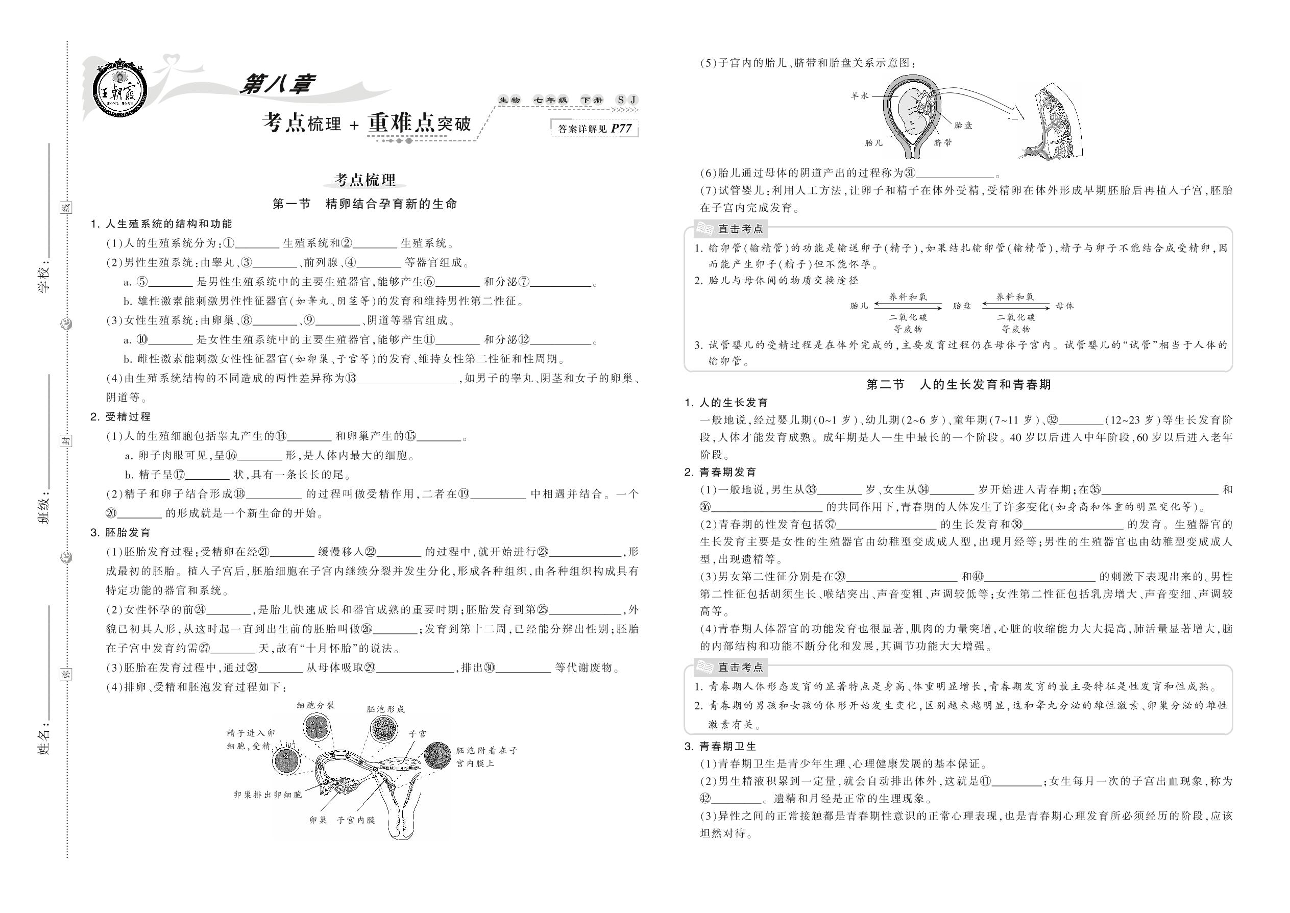 2021下册七年级生物苏教版 第八章 考点梳理 + 重难点突破