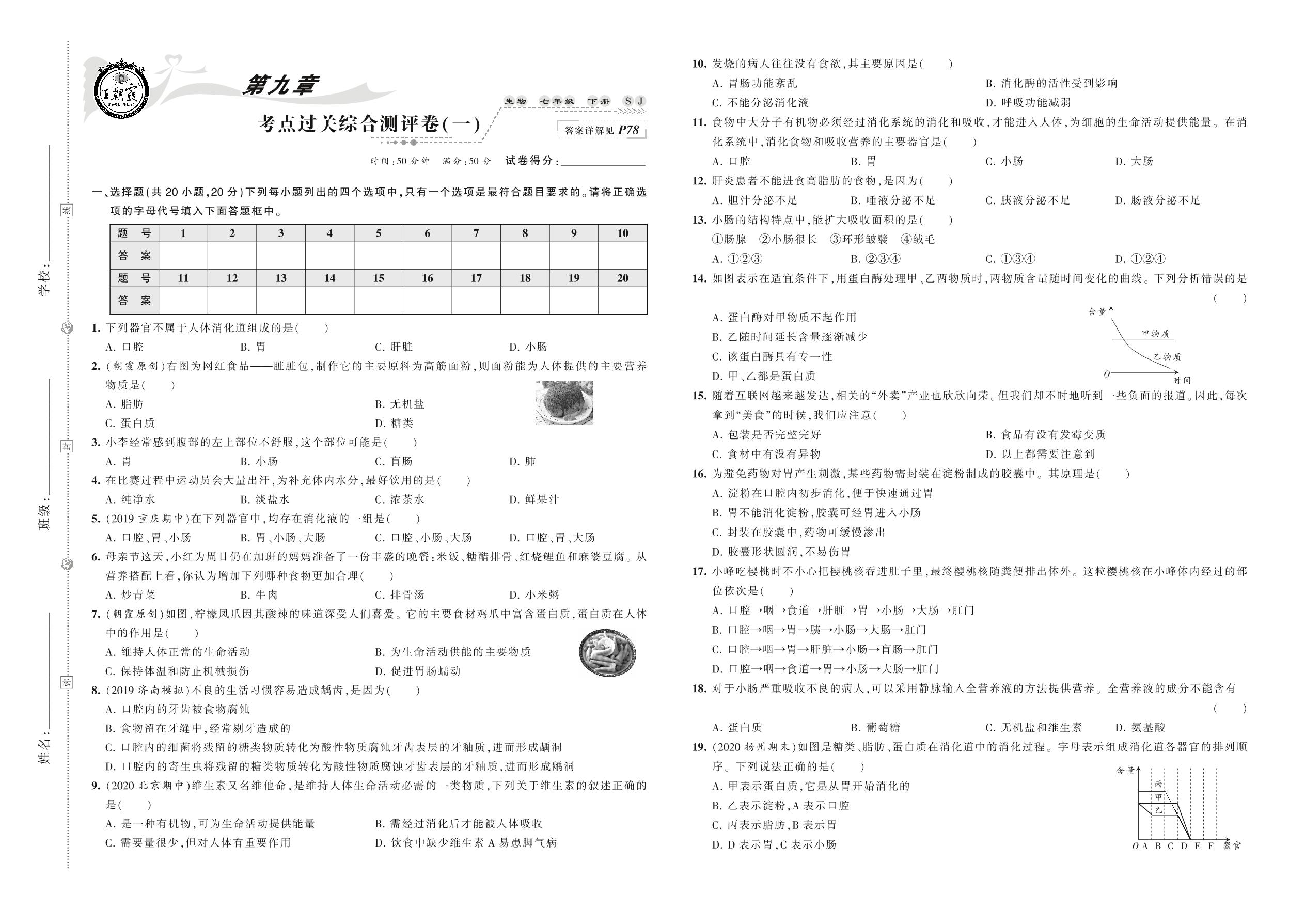 2021下册七年级生物苏教版 第九章 考点过关综合测评卷(一)