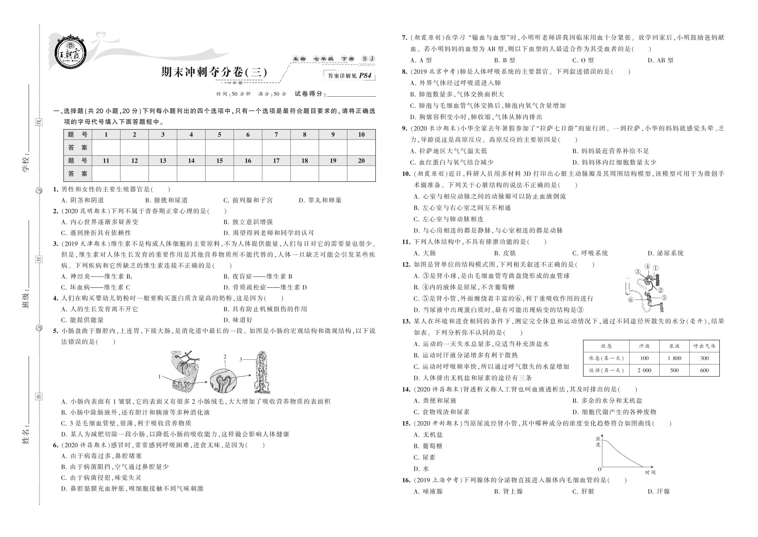 2021下册七年级生物苏教版 期末冲刺夺分卷(三)
