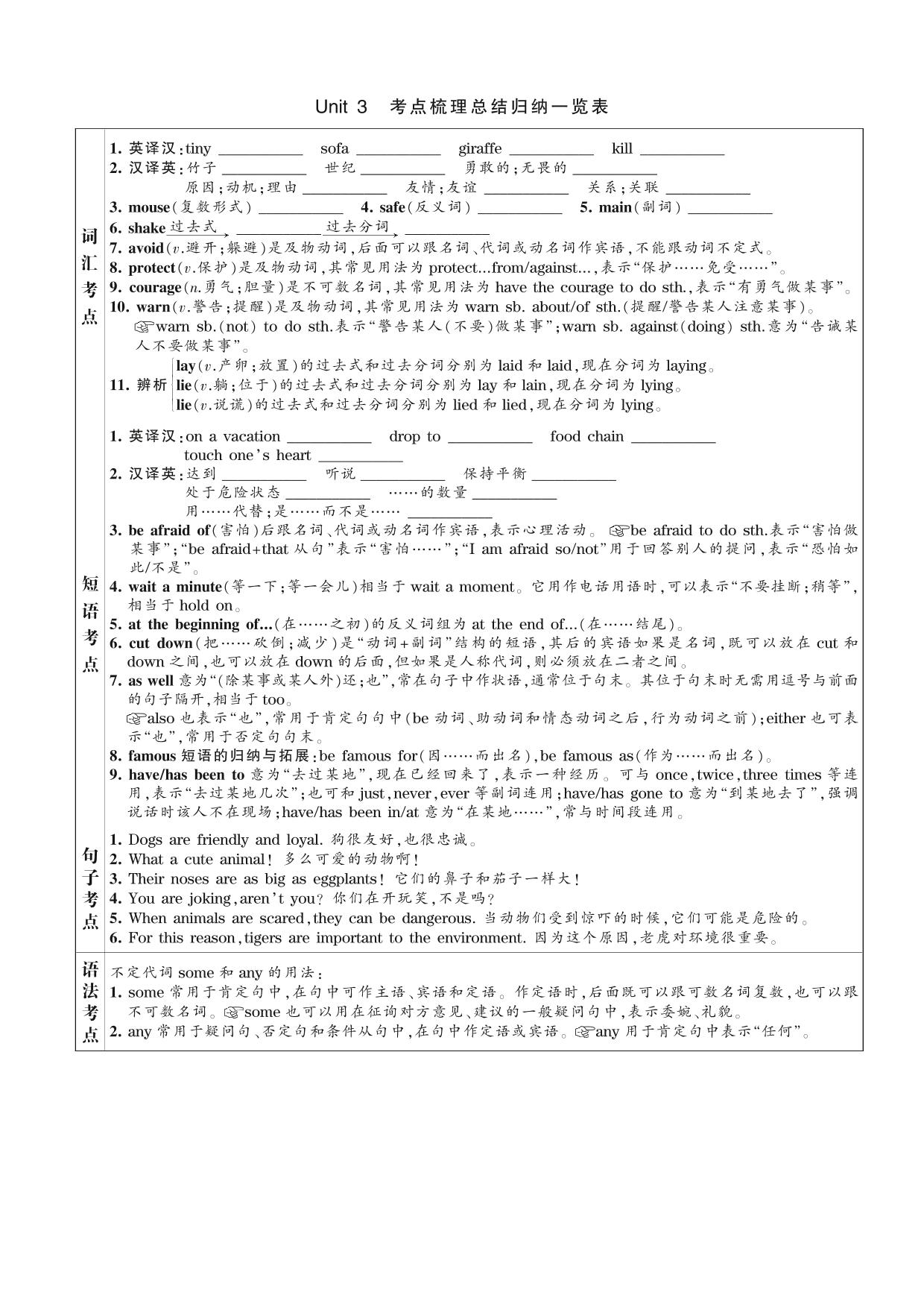 2021下册八年级英语冀教版 Unit 3 考点梳理总结归纳一览表