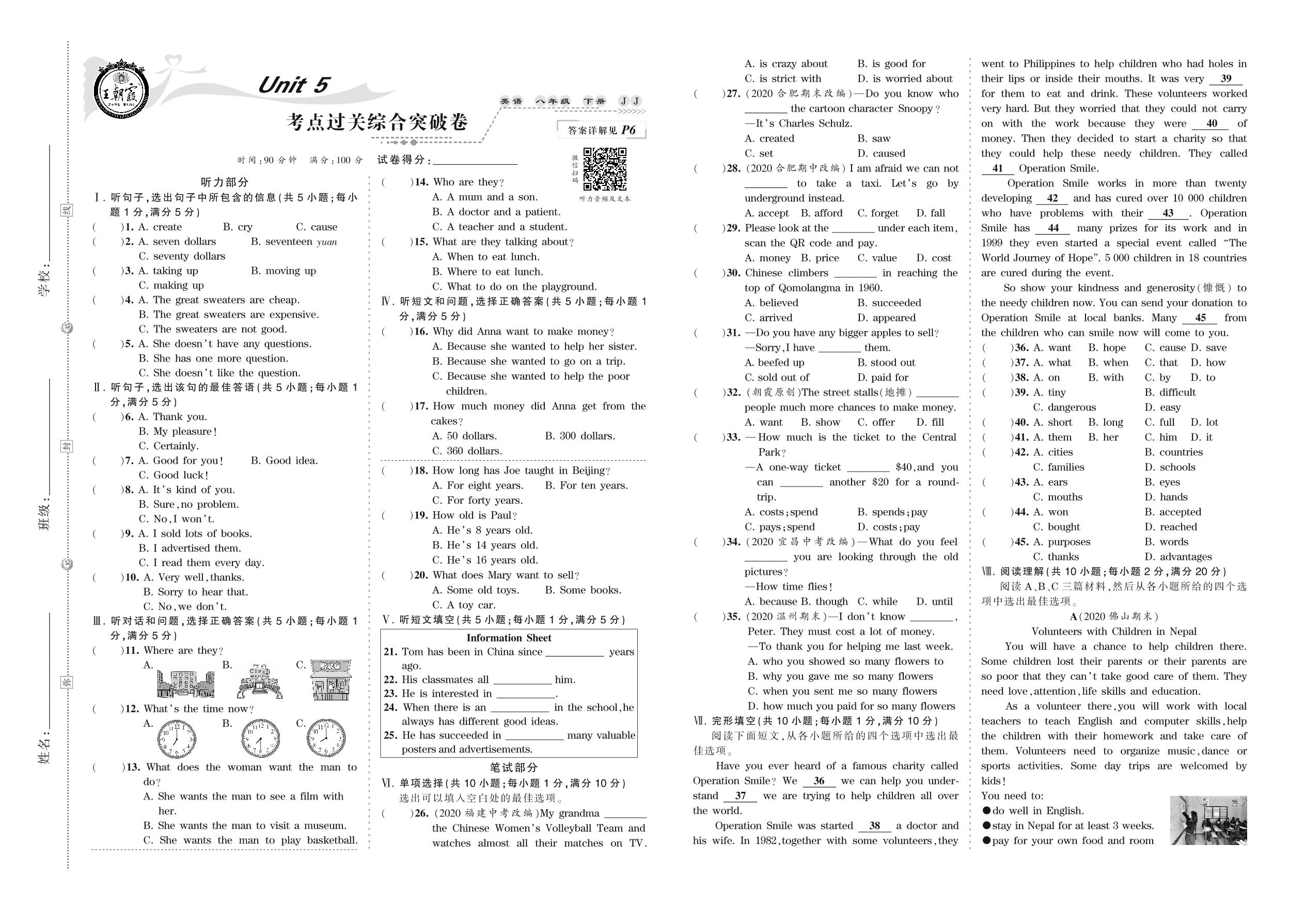 2021下册八年级英语冀教版 Unit 5 考点过关综合突破卷