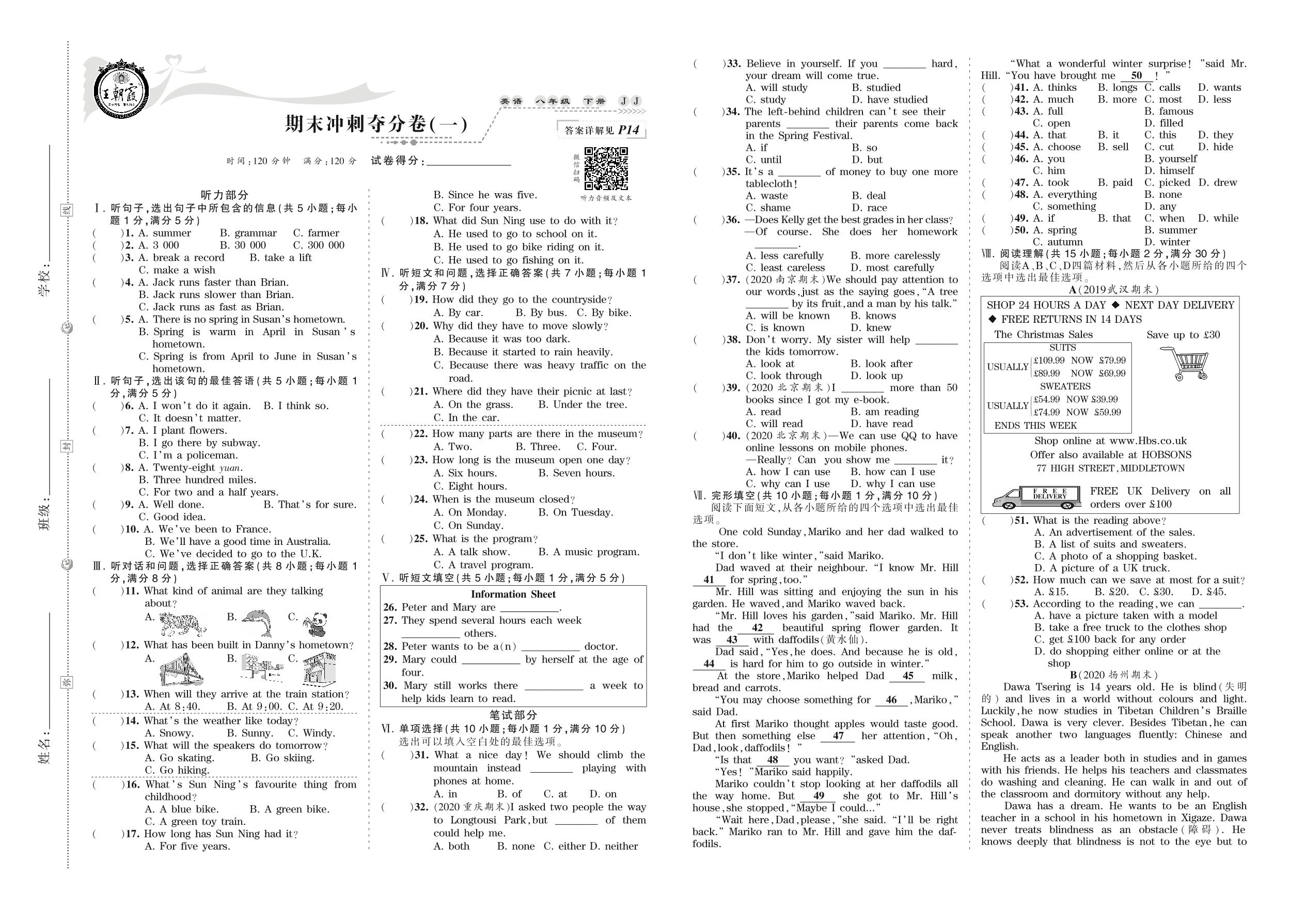 2021下册八年级英语冀教版 期末冲刺夺分卷(一)