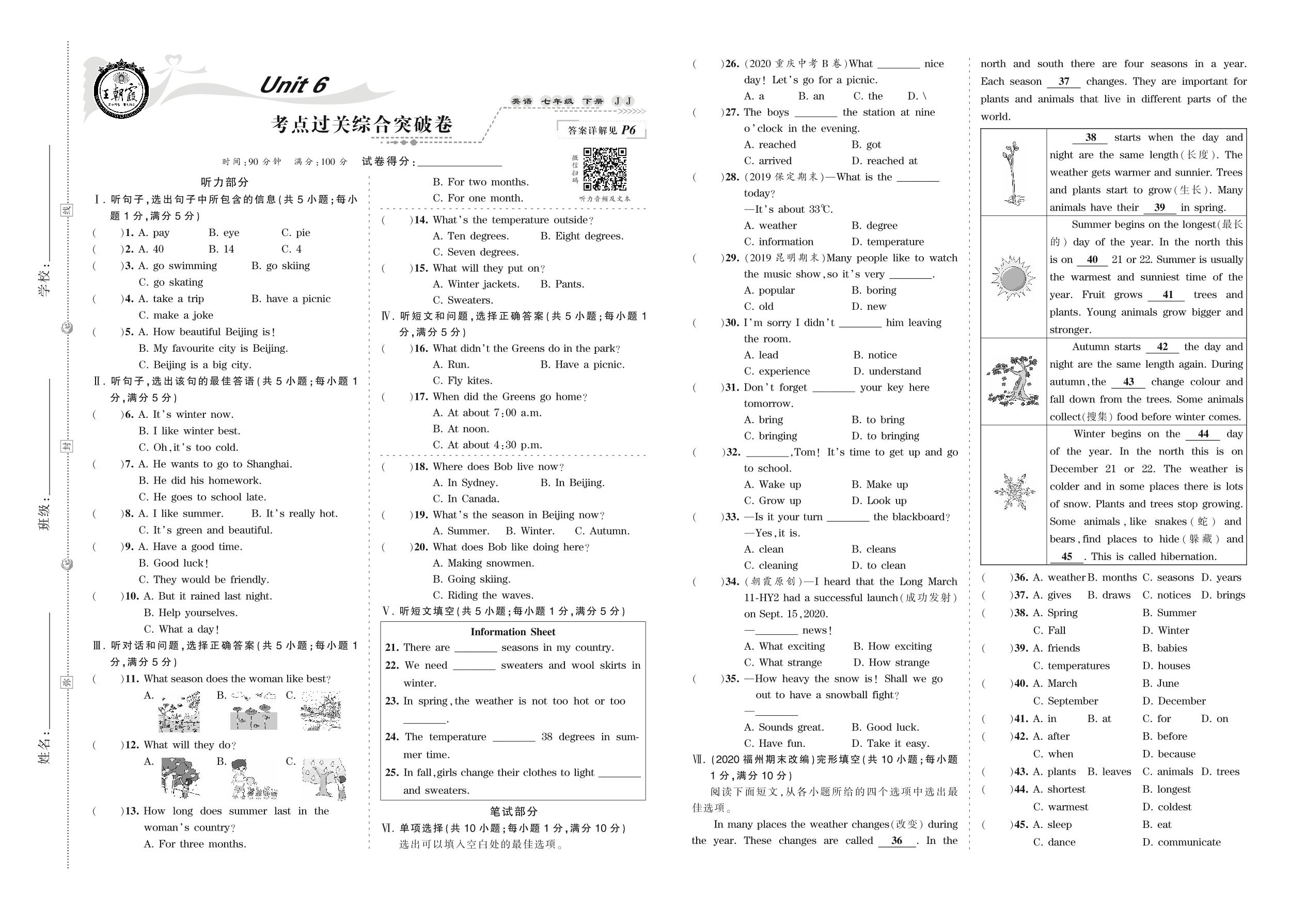 2021下册七年级英语冀教版 Unit 6 考点过关综合突破卷
