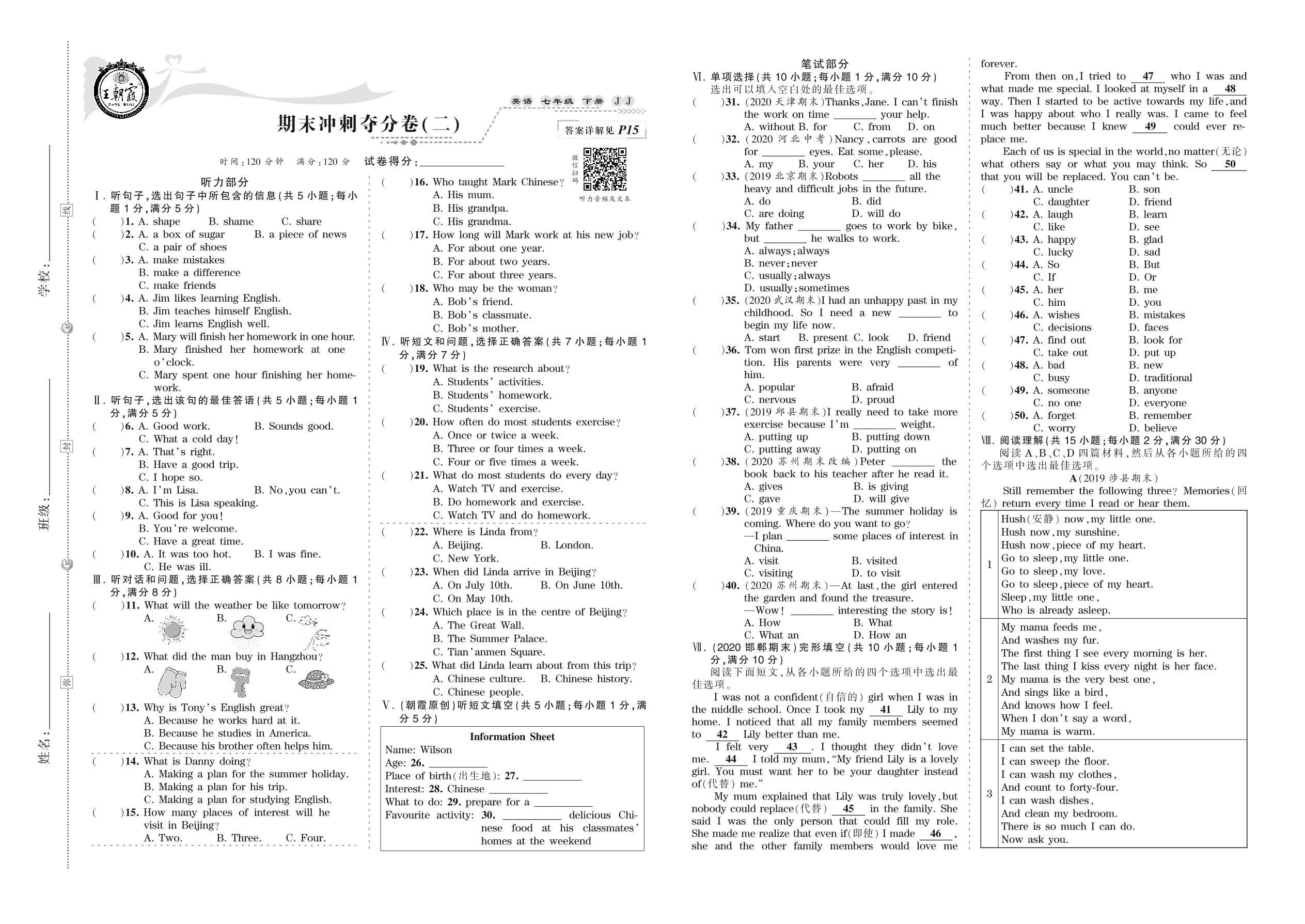 2021下册七年级英语冀教版 期末冲刺夺分卷(二)