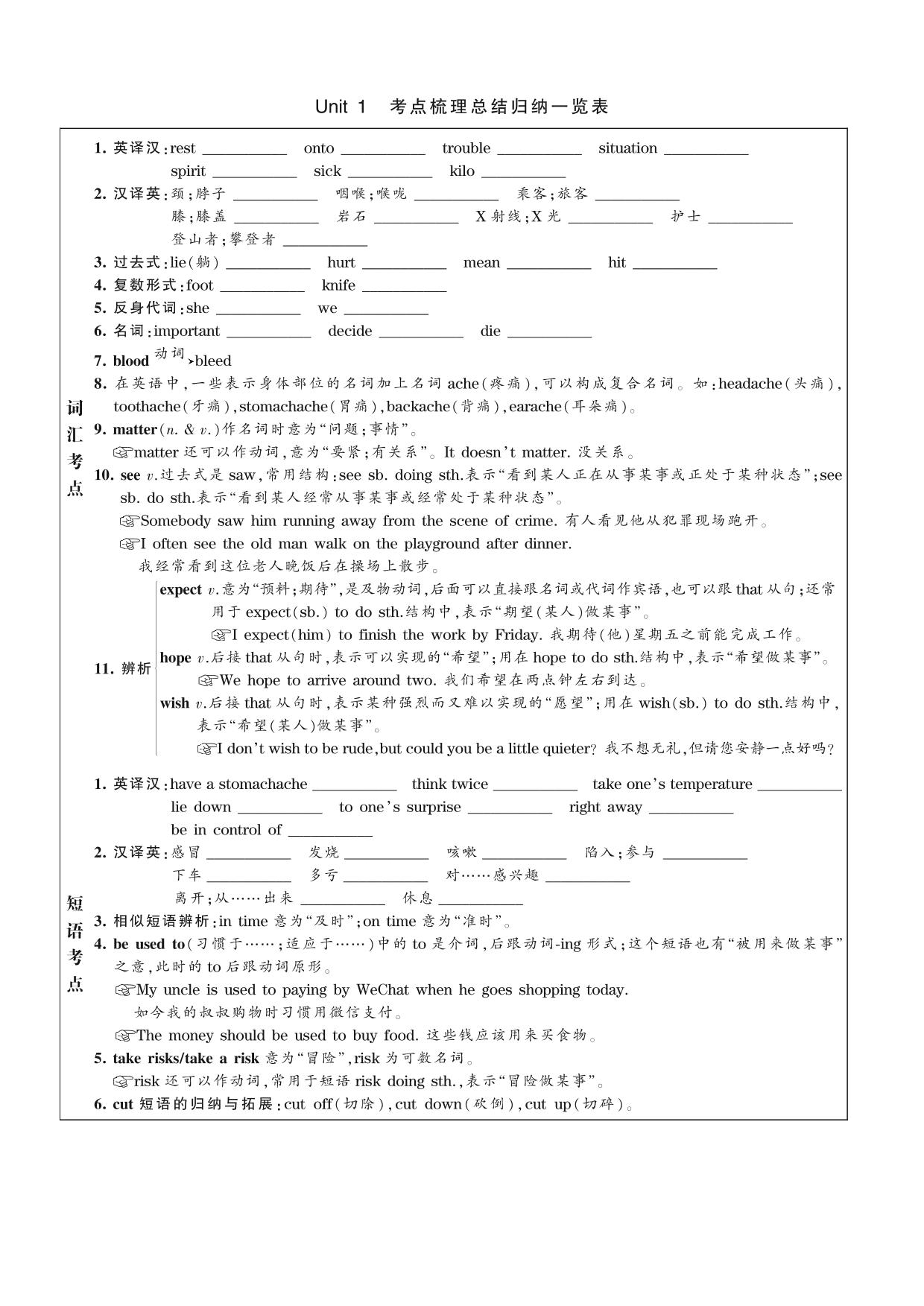 2021下册八年级英语人教版 Unit 1 考点梳理总结归纳一览表