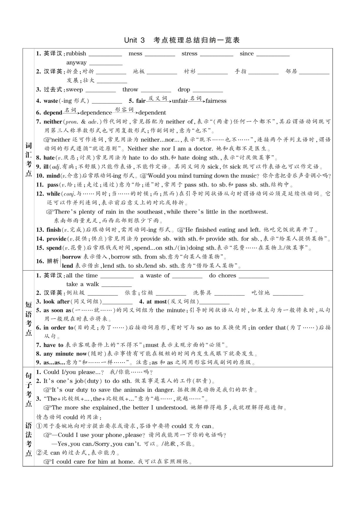2021下册八年级英语人教版 Unit 3 考点梳理总结归纳一览表
