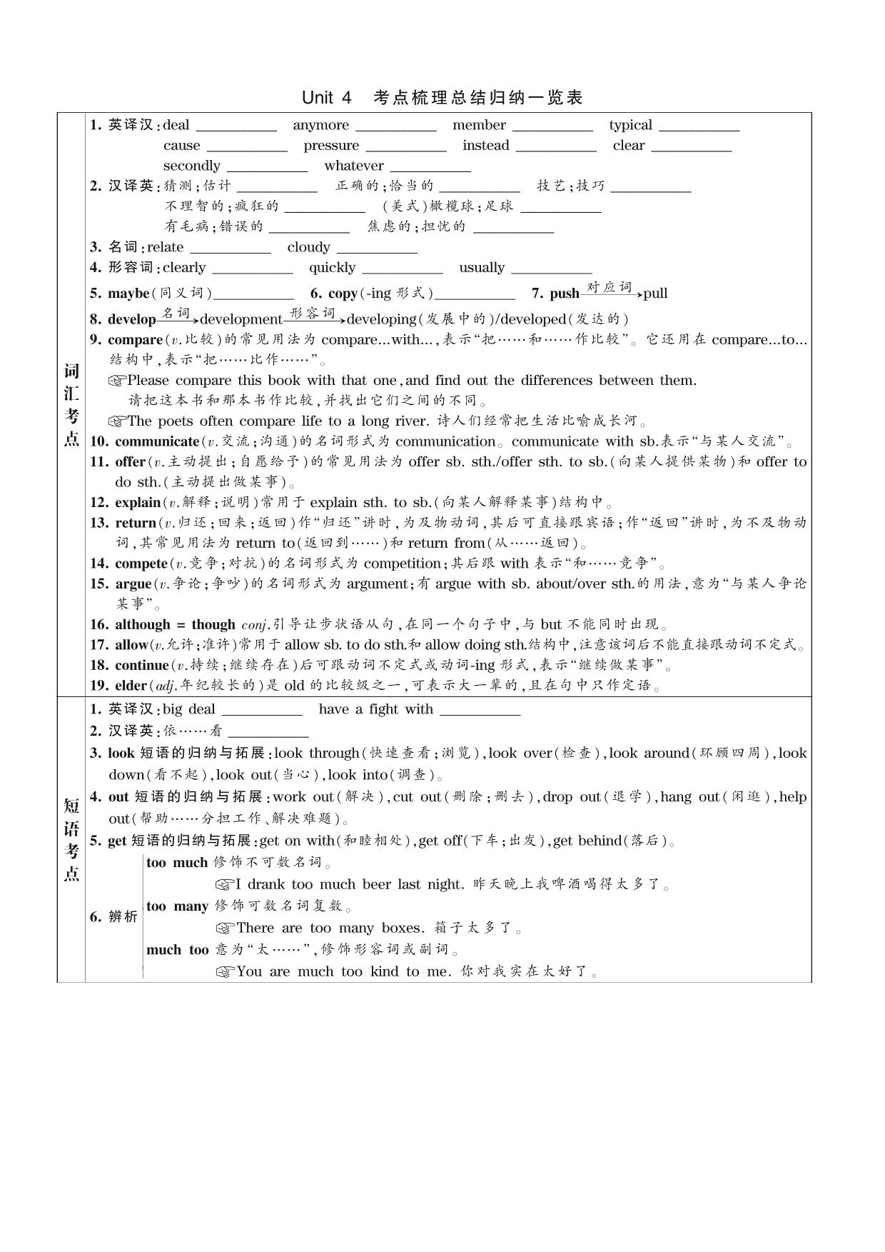 2021下册八年级英语人教版 Unit 4 考点梳理总结归纳一览表