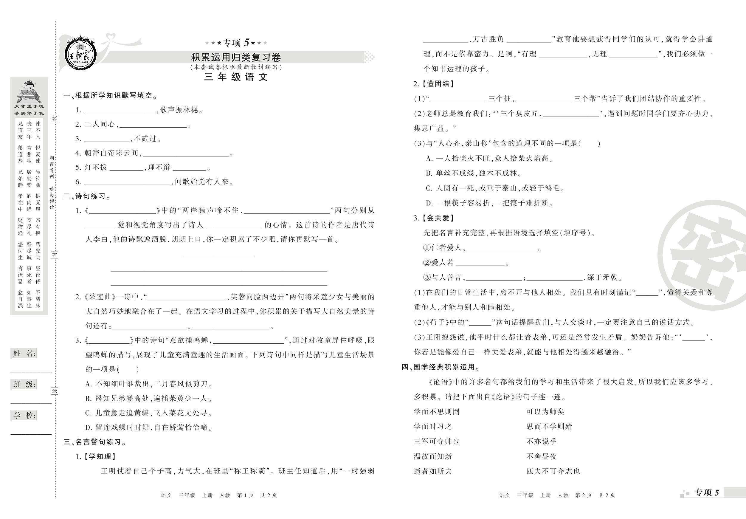 三年级语文人教版上册专项卷