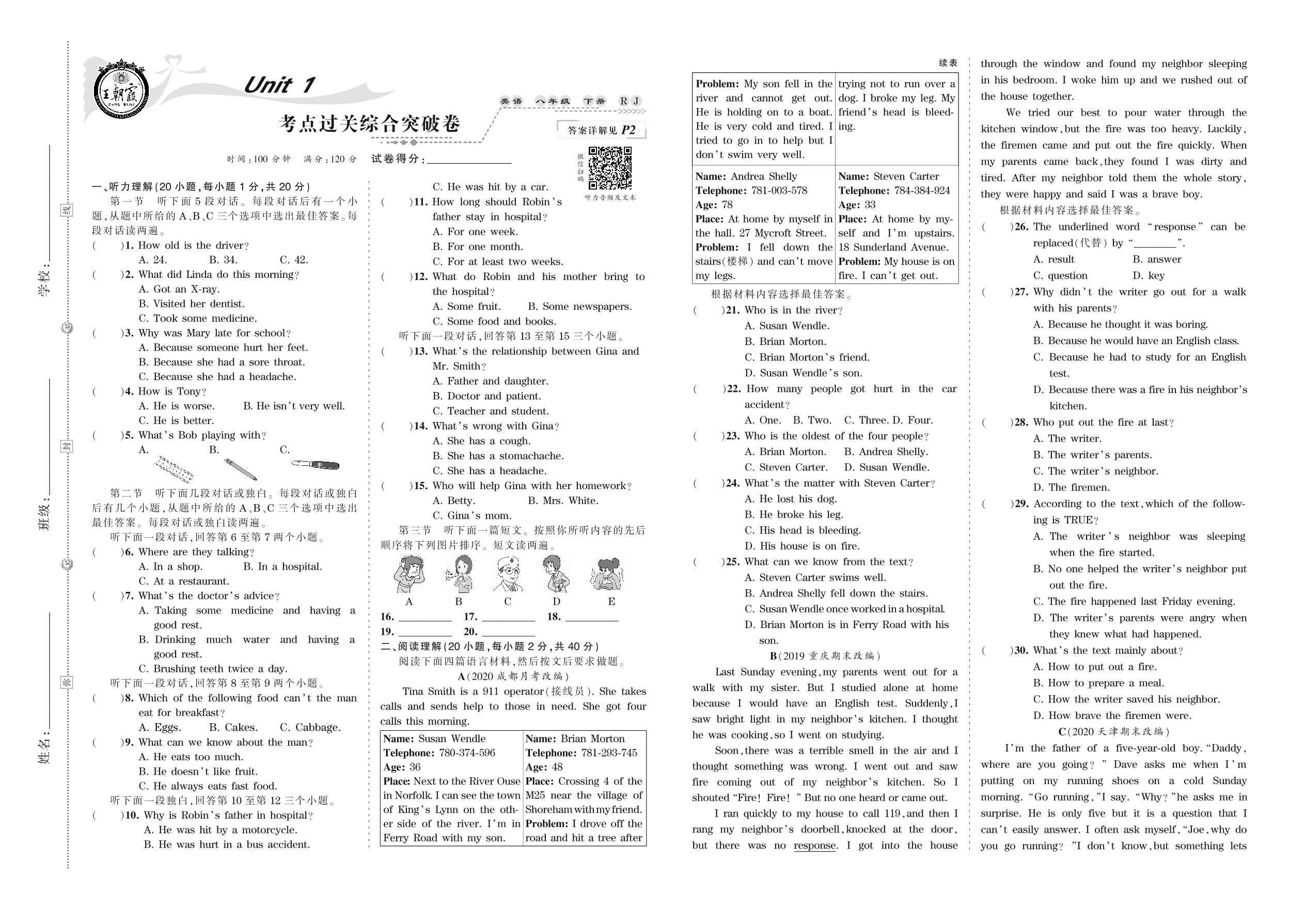 2021下册八年级英语人教版 Unit 1 考点过关综合突破卷