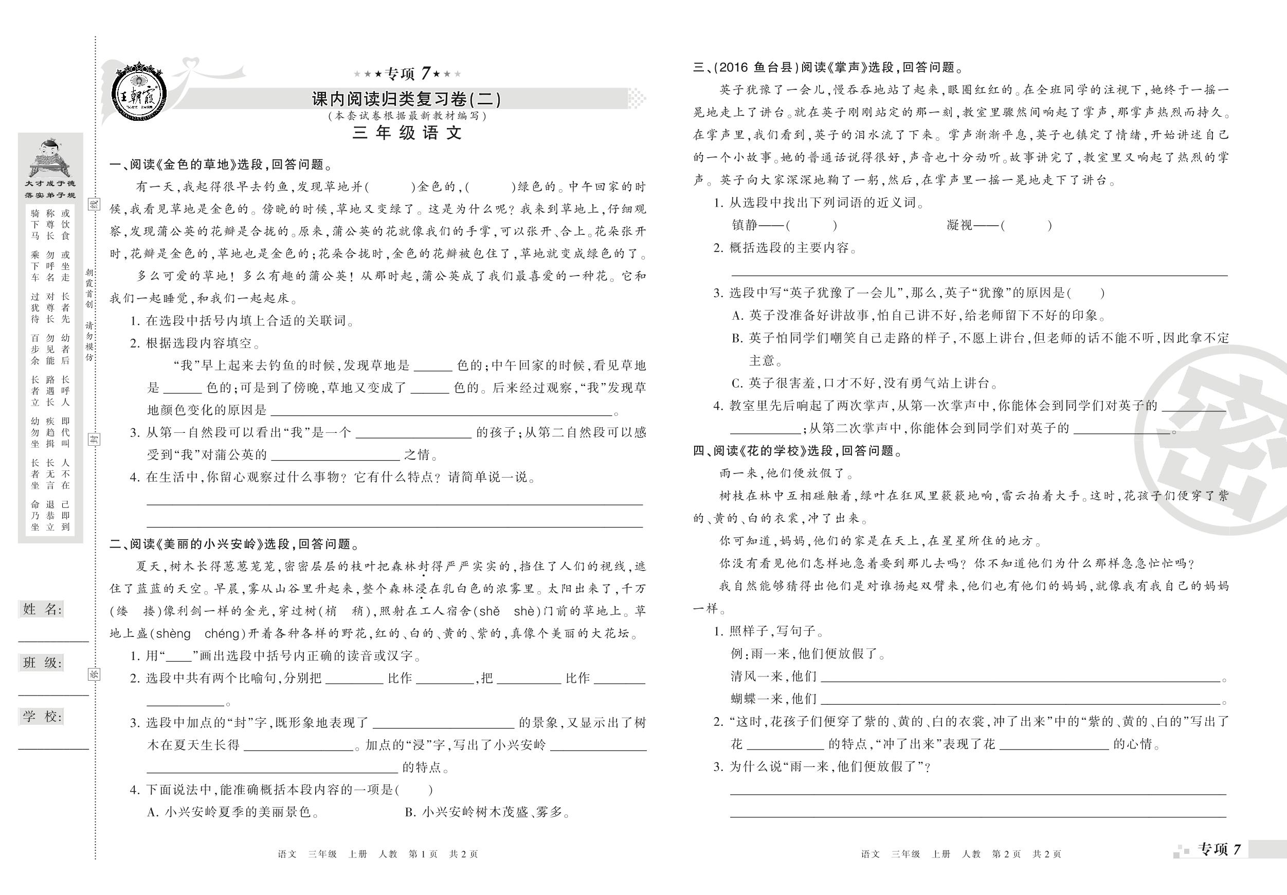王朝霞期末专项卷——课内阅读、课外阅读与写作真题归类复习三年级上册语文(人教版)_R210801102900【0】