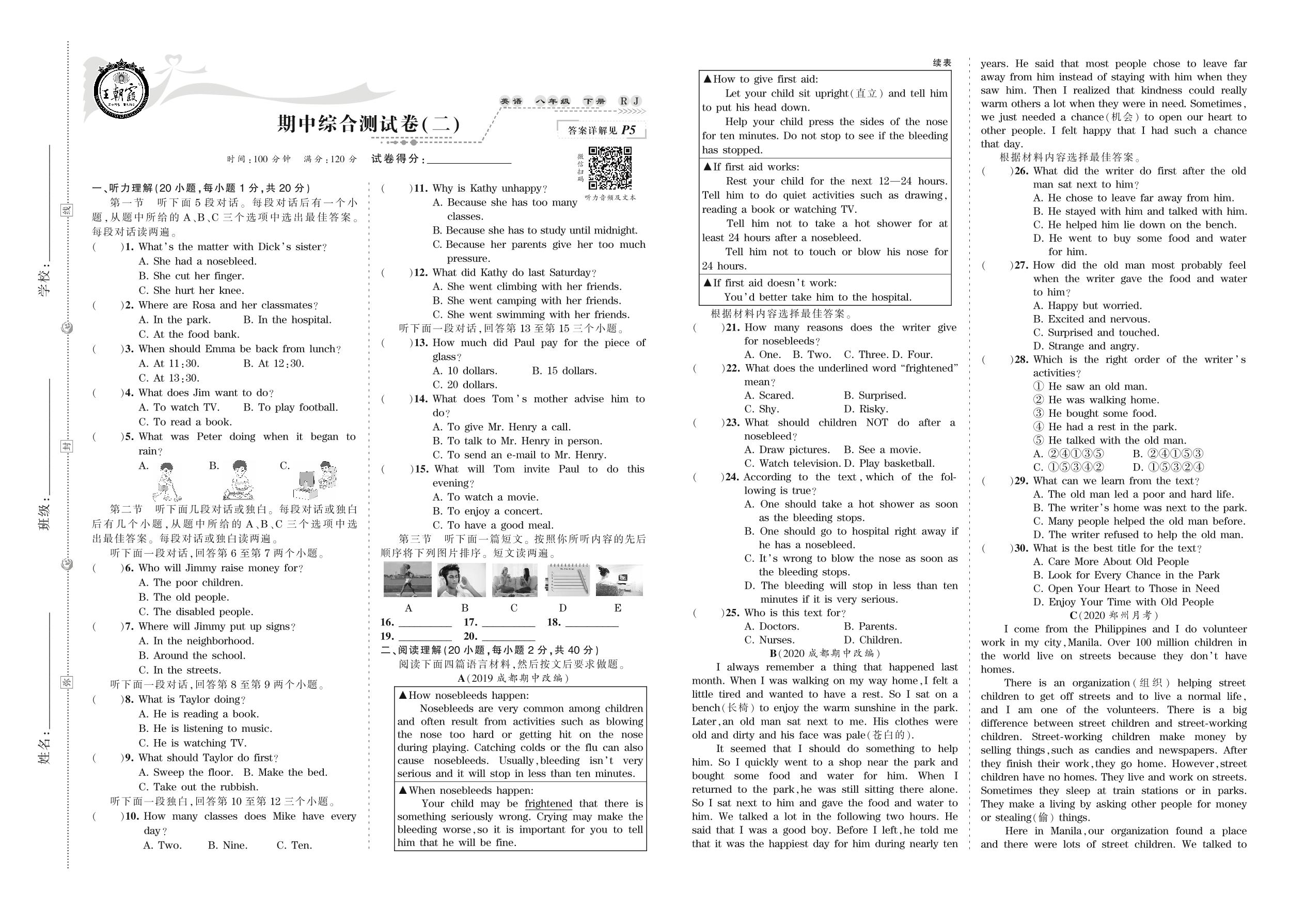 八年级英语人教版下册期中卷