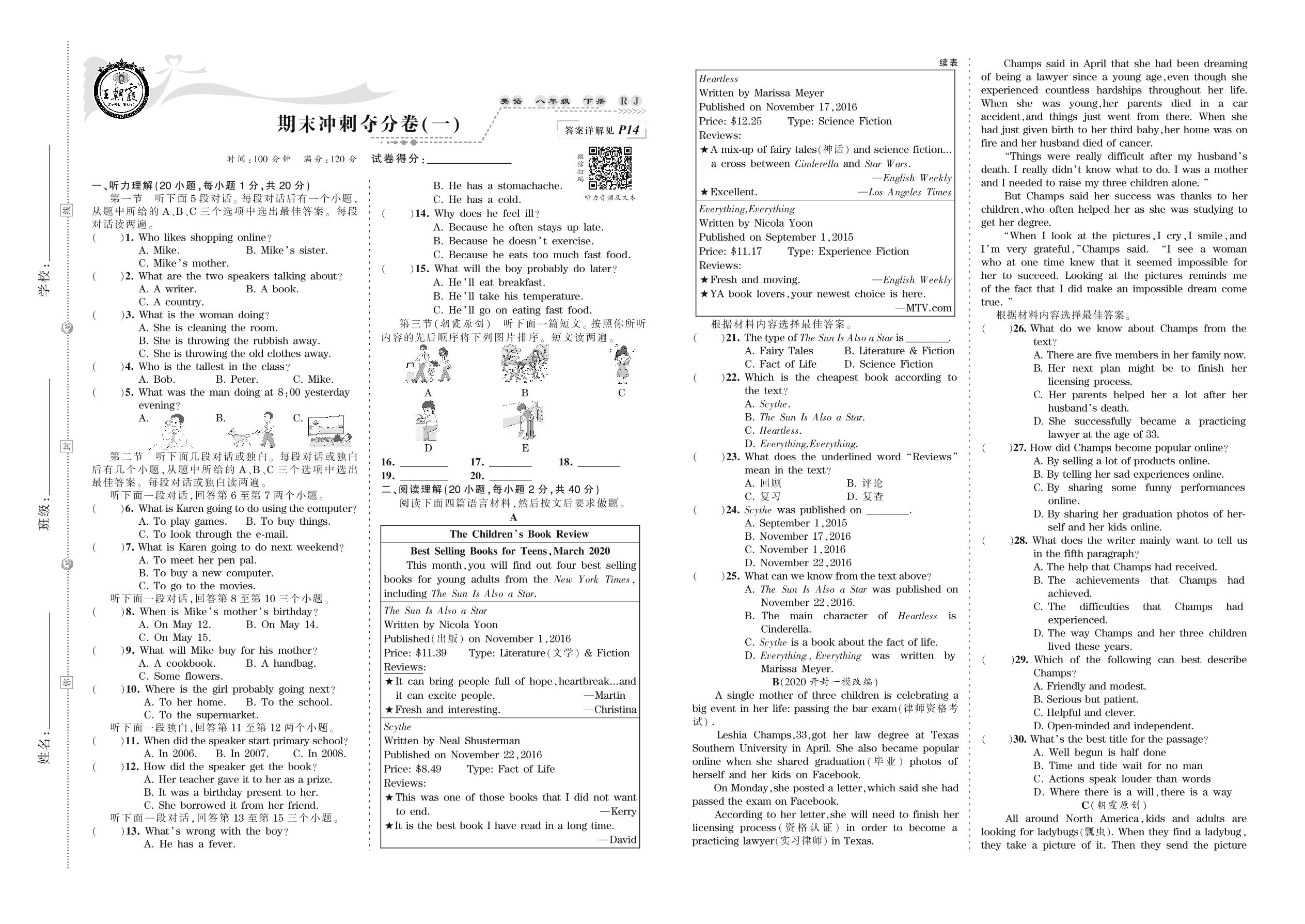 2021下册八年级英语人教版 期末冲刺夺分卷(一)