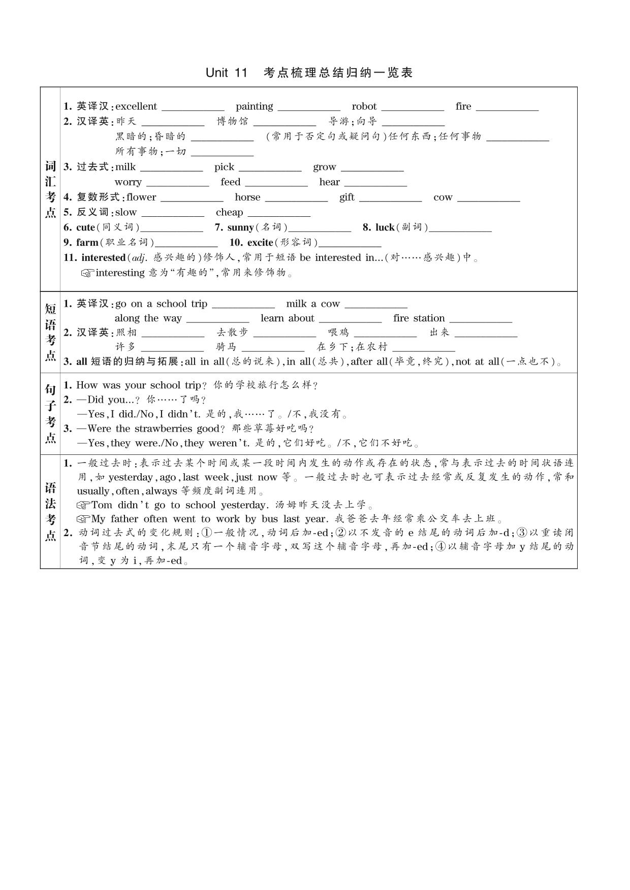 Unit 11 考点梳理总结归纳一览表