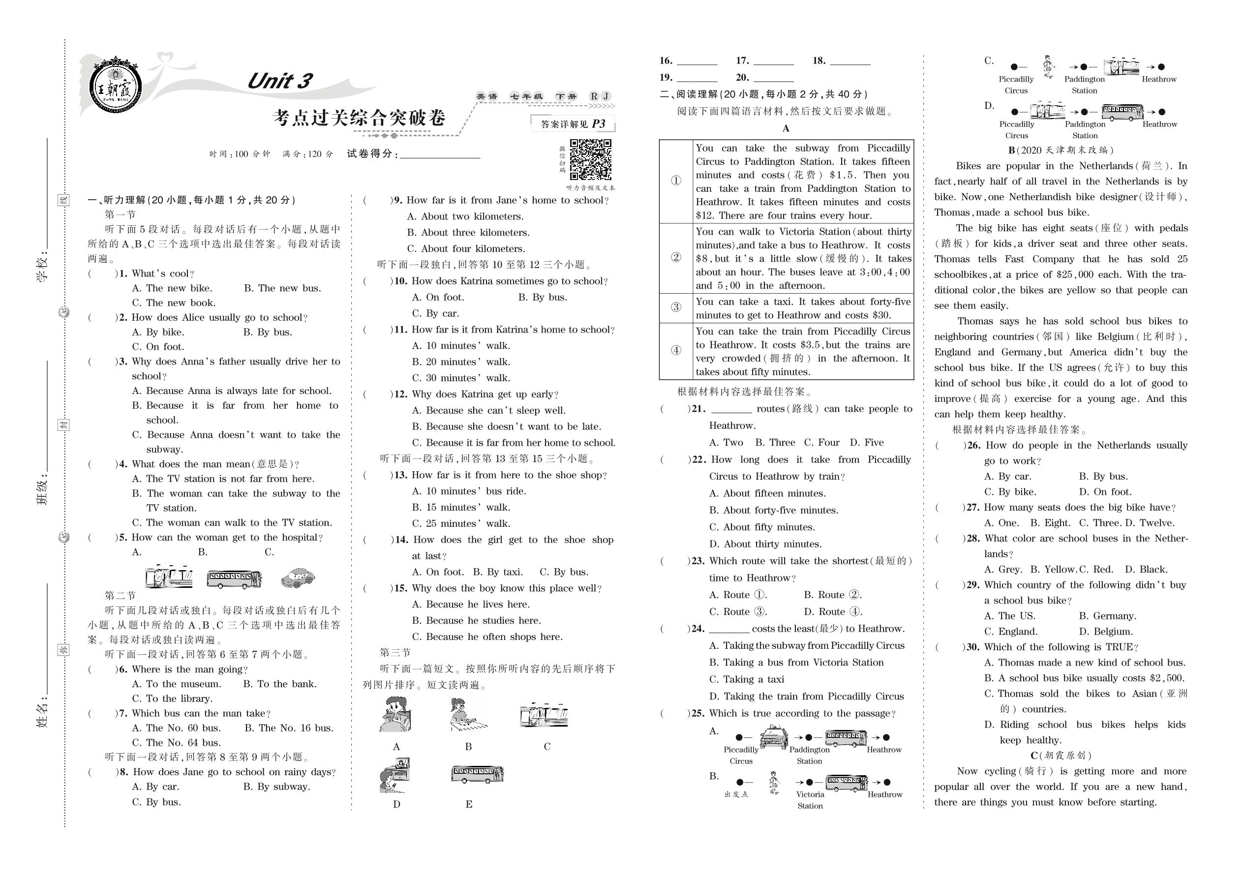 七年级英语人教版下册单元卷