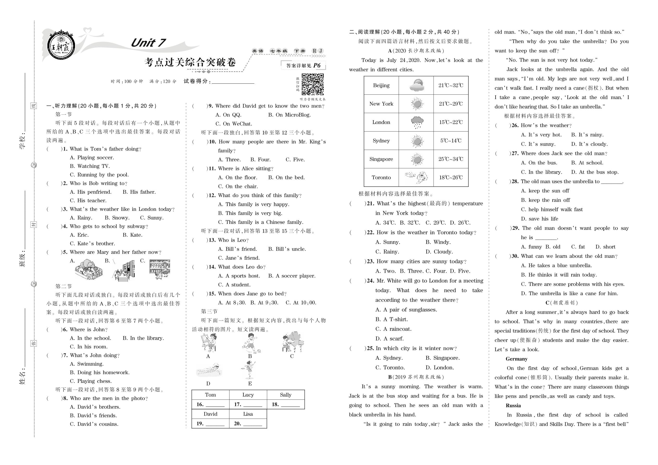 七年级英语人教版下册单元卷