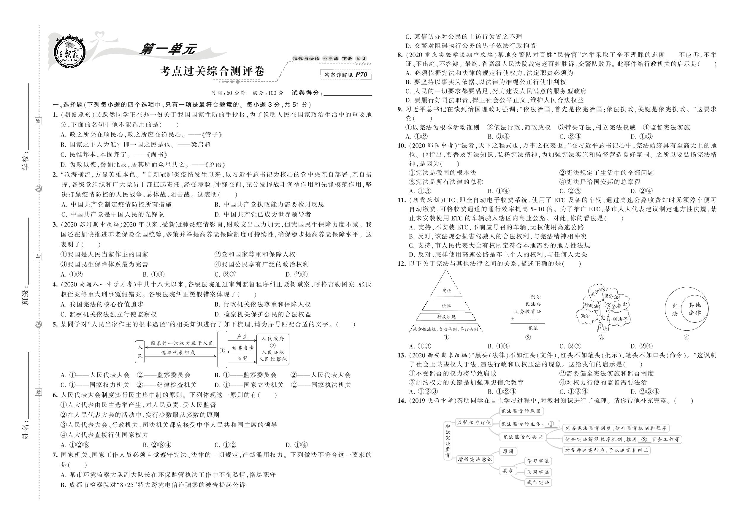 2021下册八年级道德与法治人教版 第一单元 考点过关综合测评卷