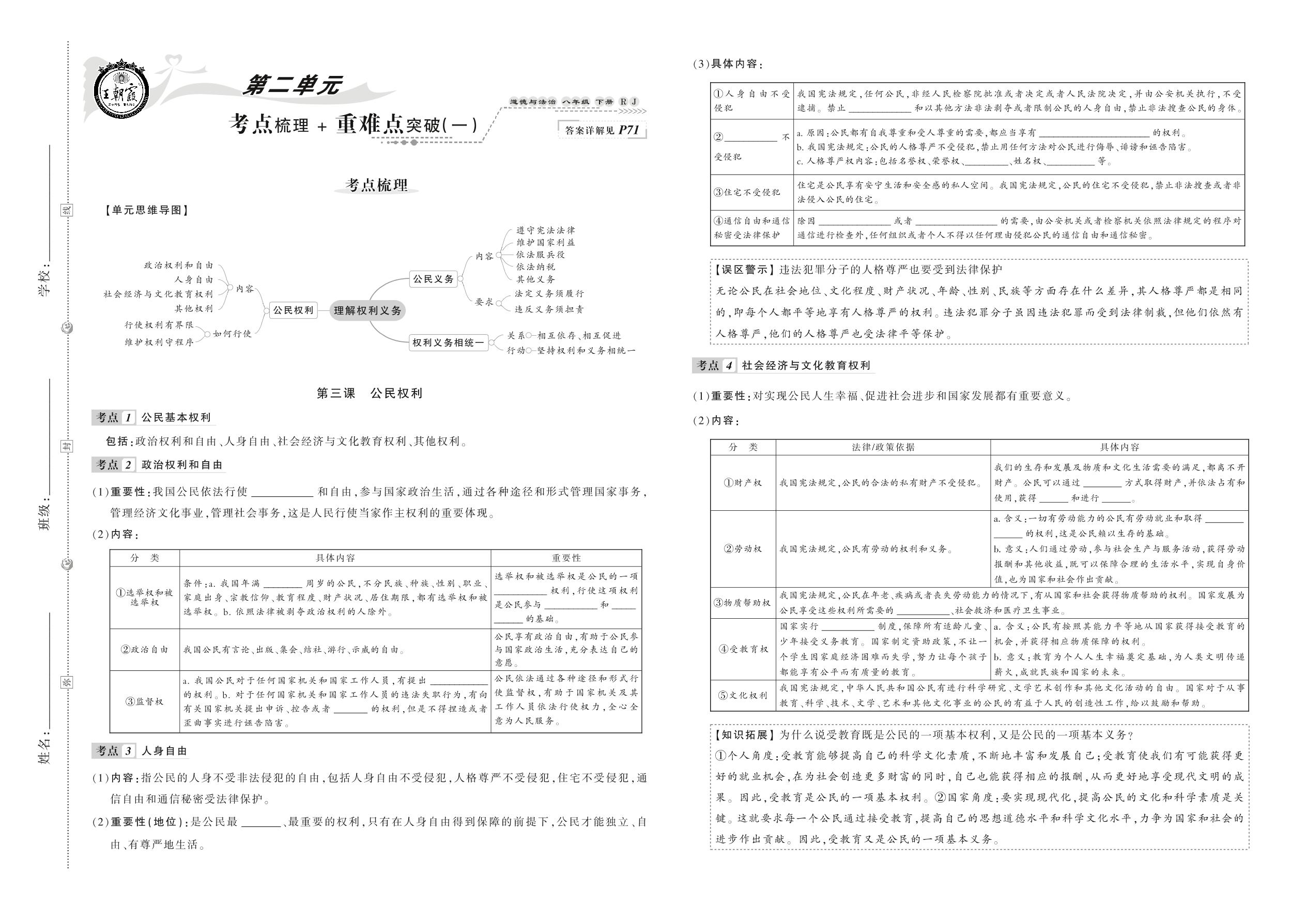 2021下册八年级道德与法治人教版 第二单元 考点梳理+重难点突破(一)