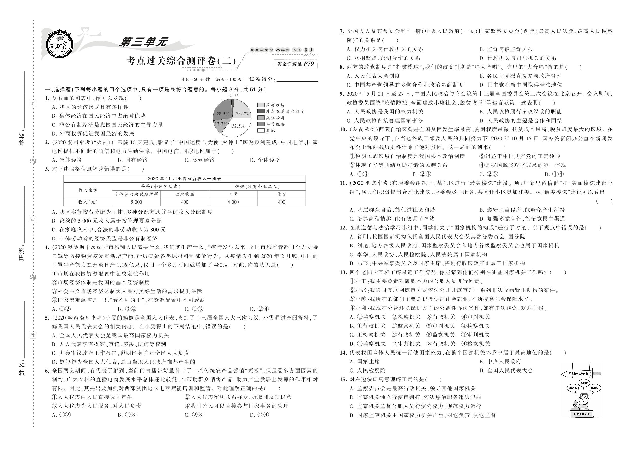 2021下册八年级道德与法治人教版 第三单元 考点过关综合测评卷(二)