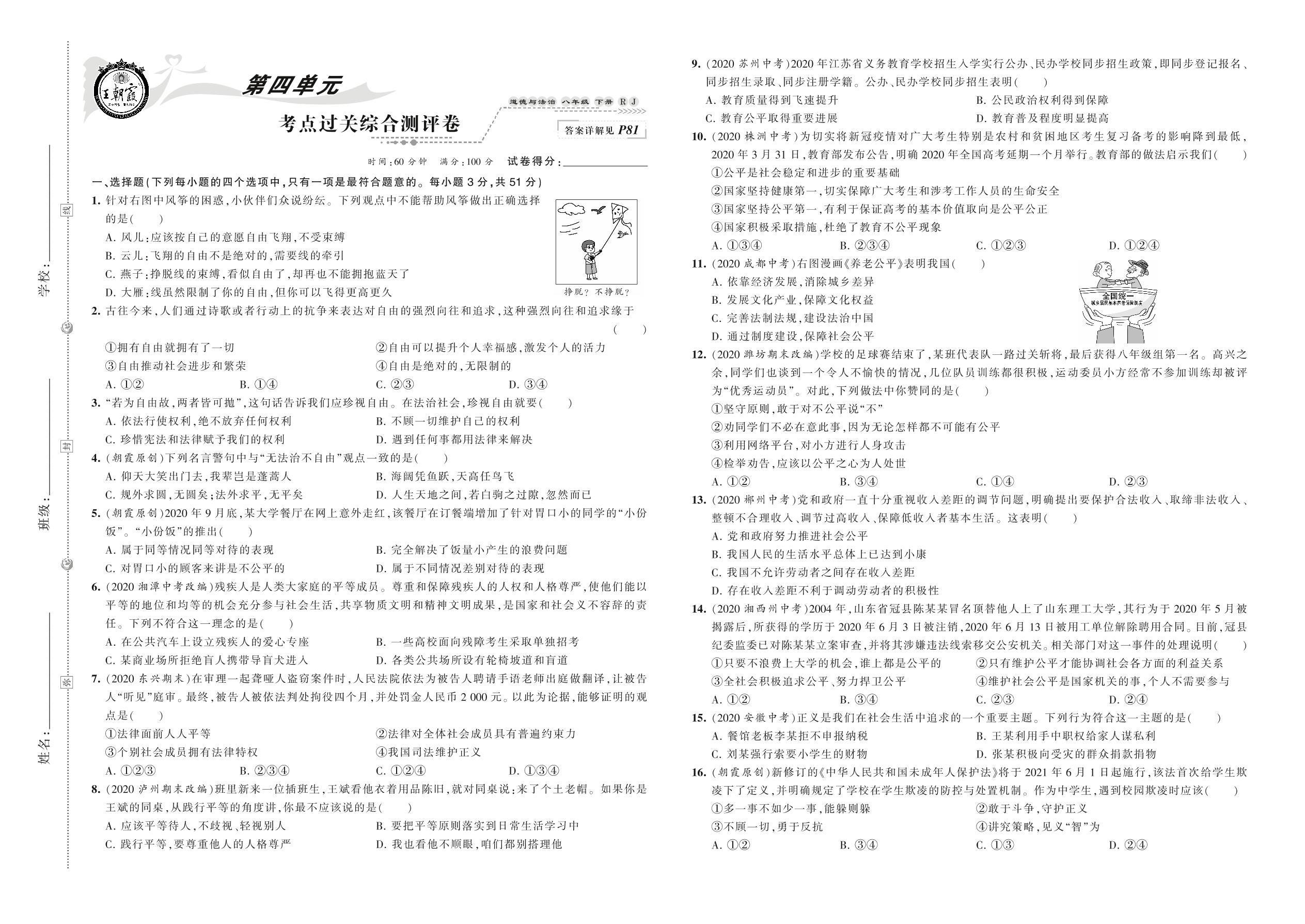 八年级道德与法治人教版下册单元卷