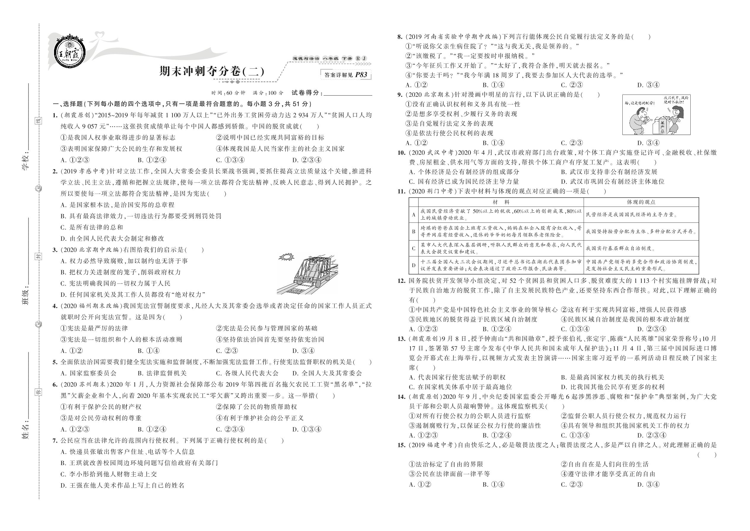 2021下册八年级道德与法治人教版 期末冲刺夺分卷(二)