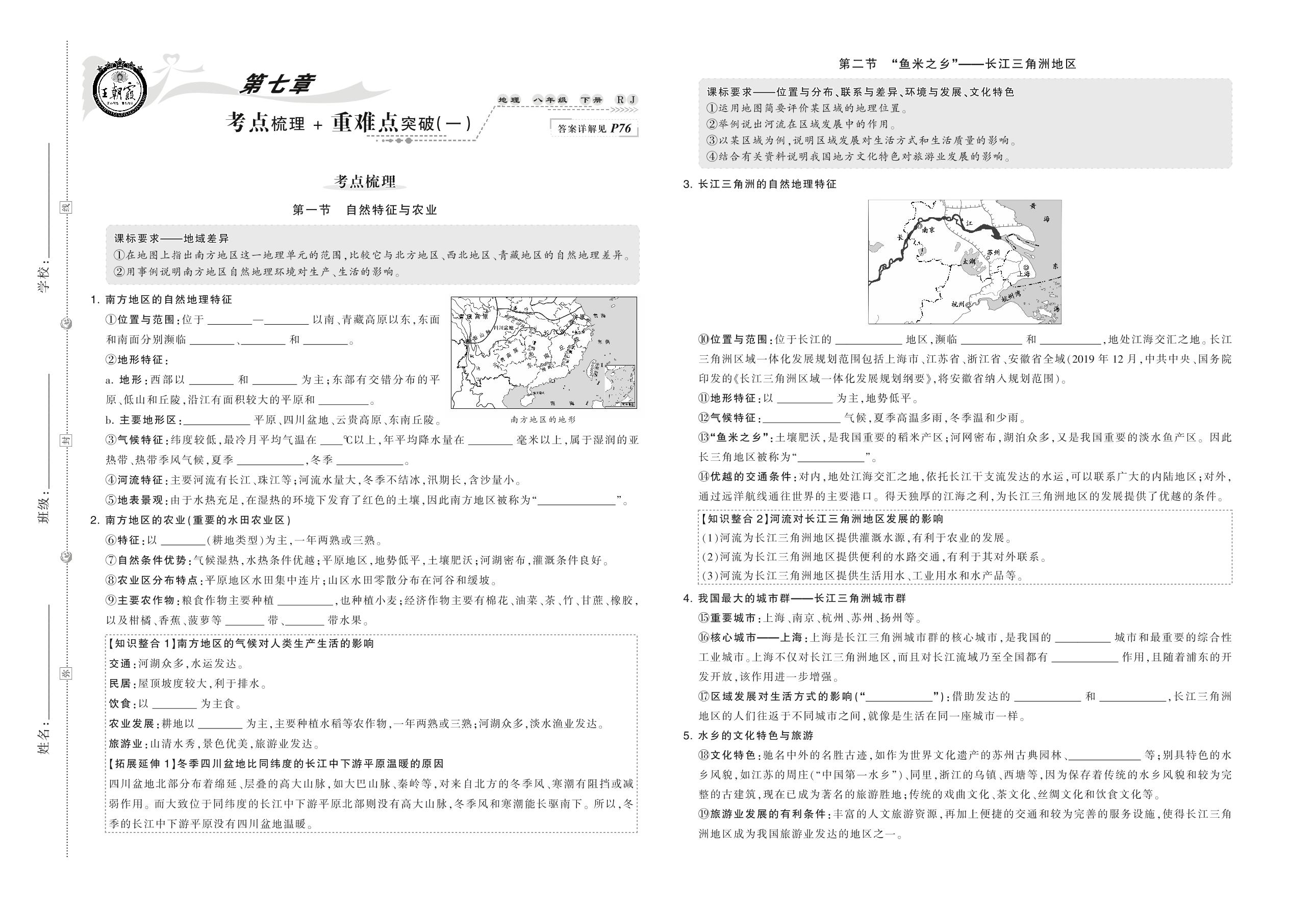 2021下册八年级地理人教版 第七章 考点梳理+重难点突破(一)