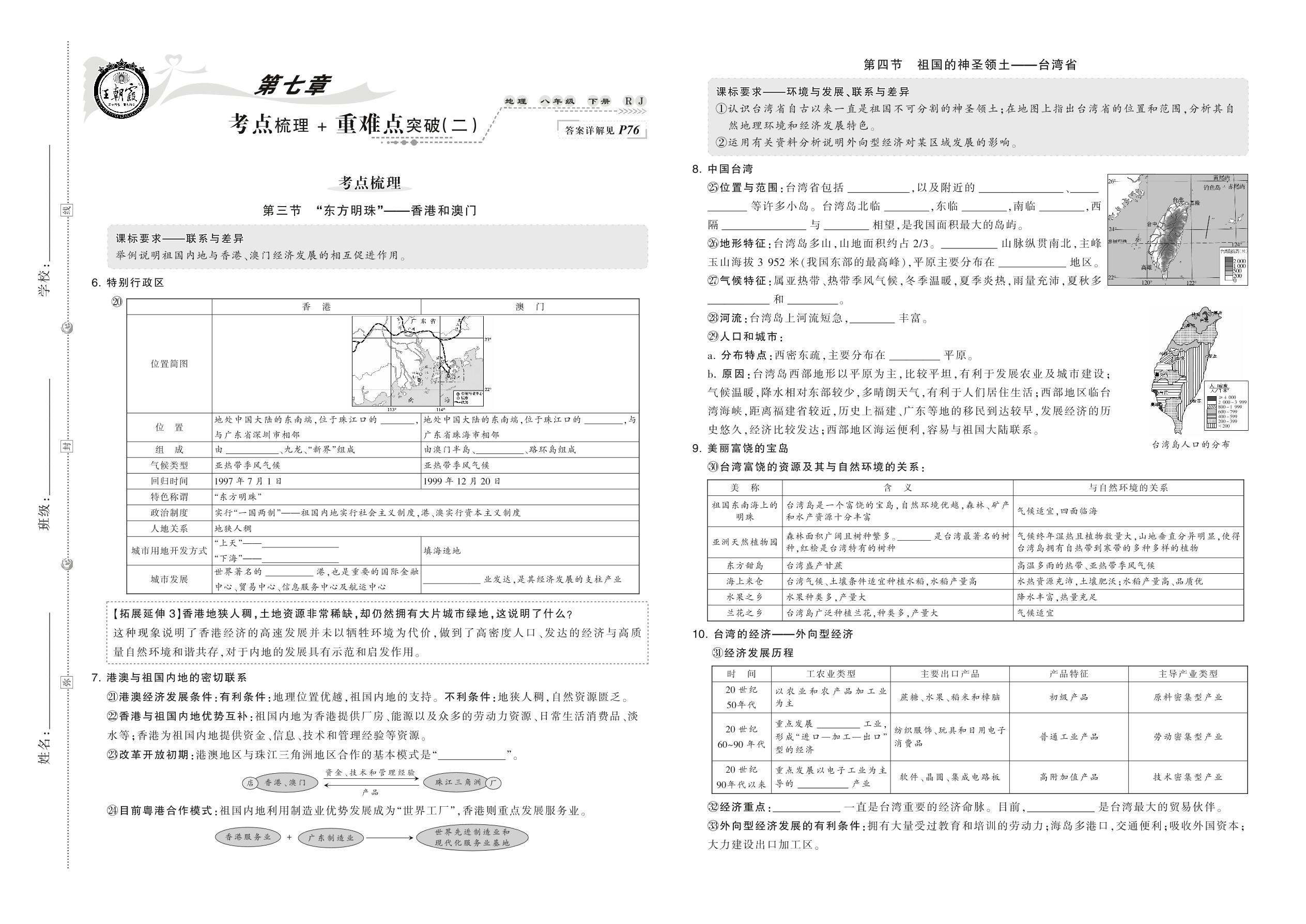 2021下册八年级地理人教版 第七章 考点梳理+重难点突破(二)