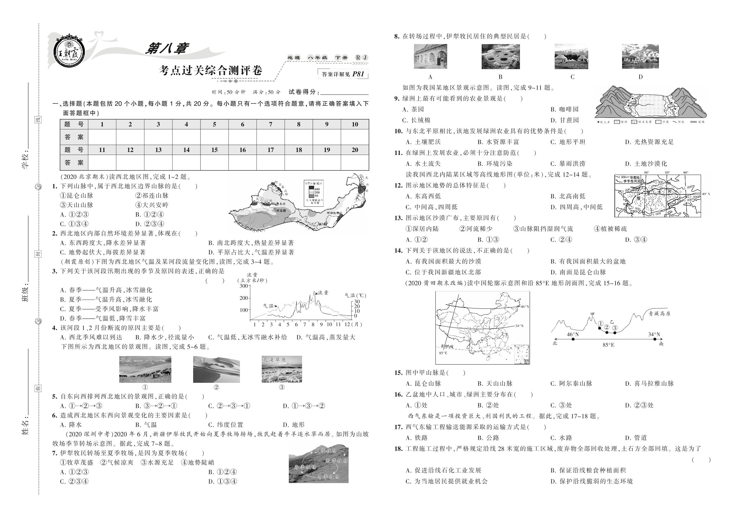 2021下册八年级地理人教版 第八章 考点过关综合测评卷