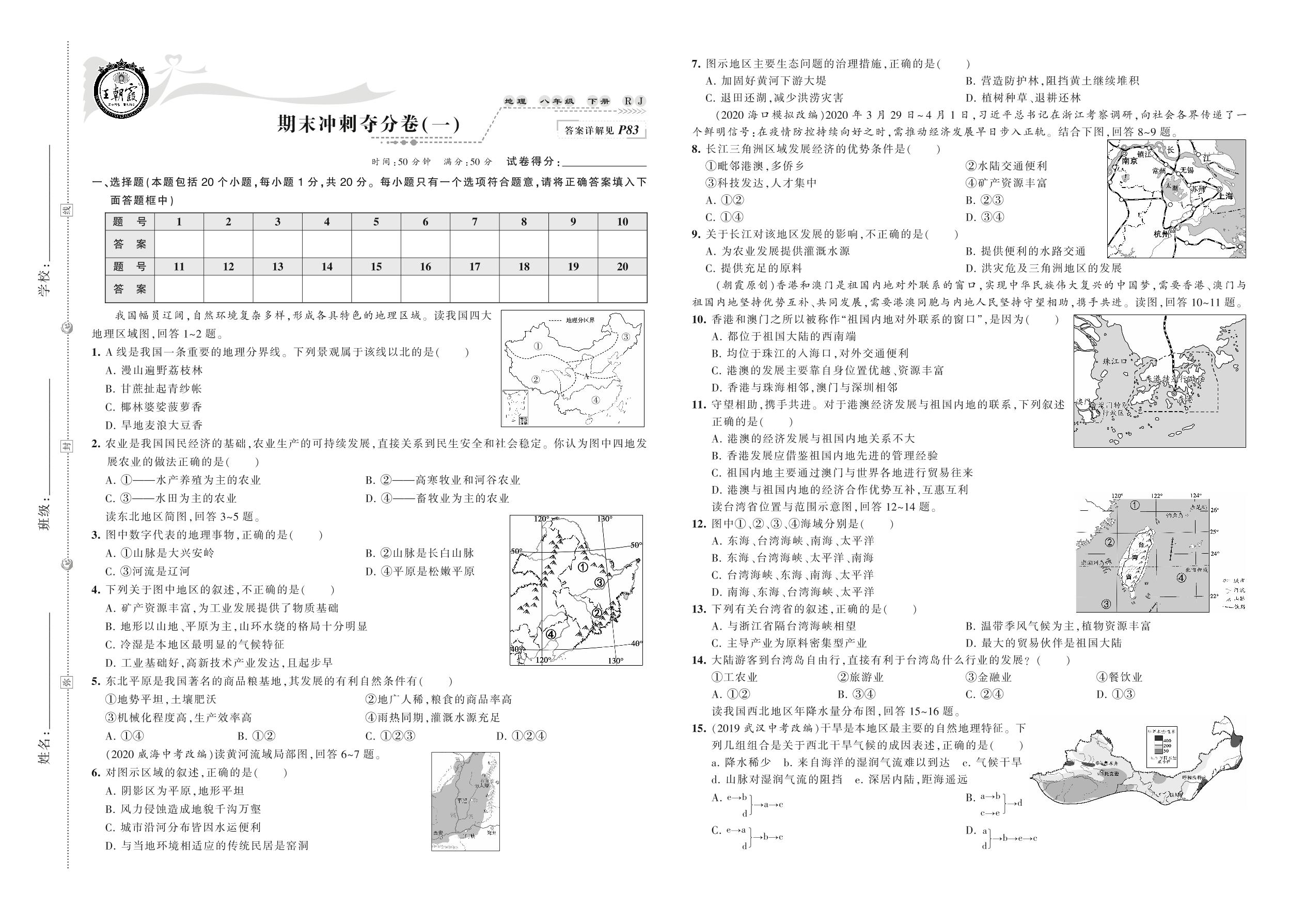 2021下册八年级地理人教版 期末冲刺夺分卷(一)