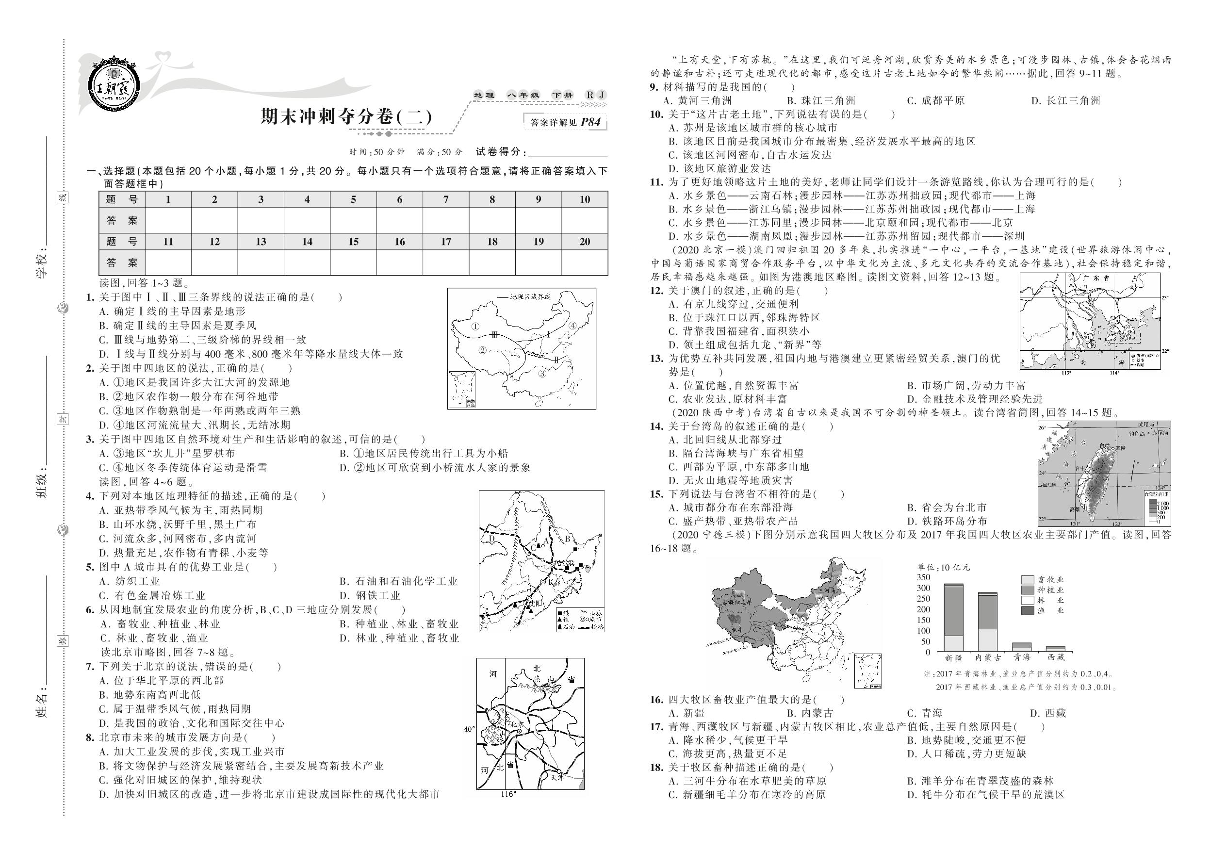 2021下册八年级地理人教版 期末冲刺夺分卷(二)