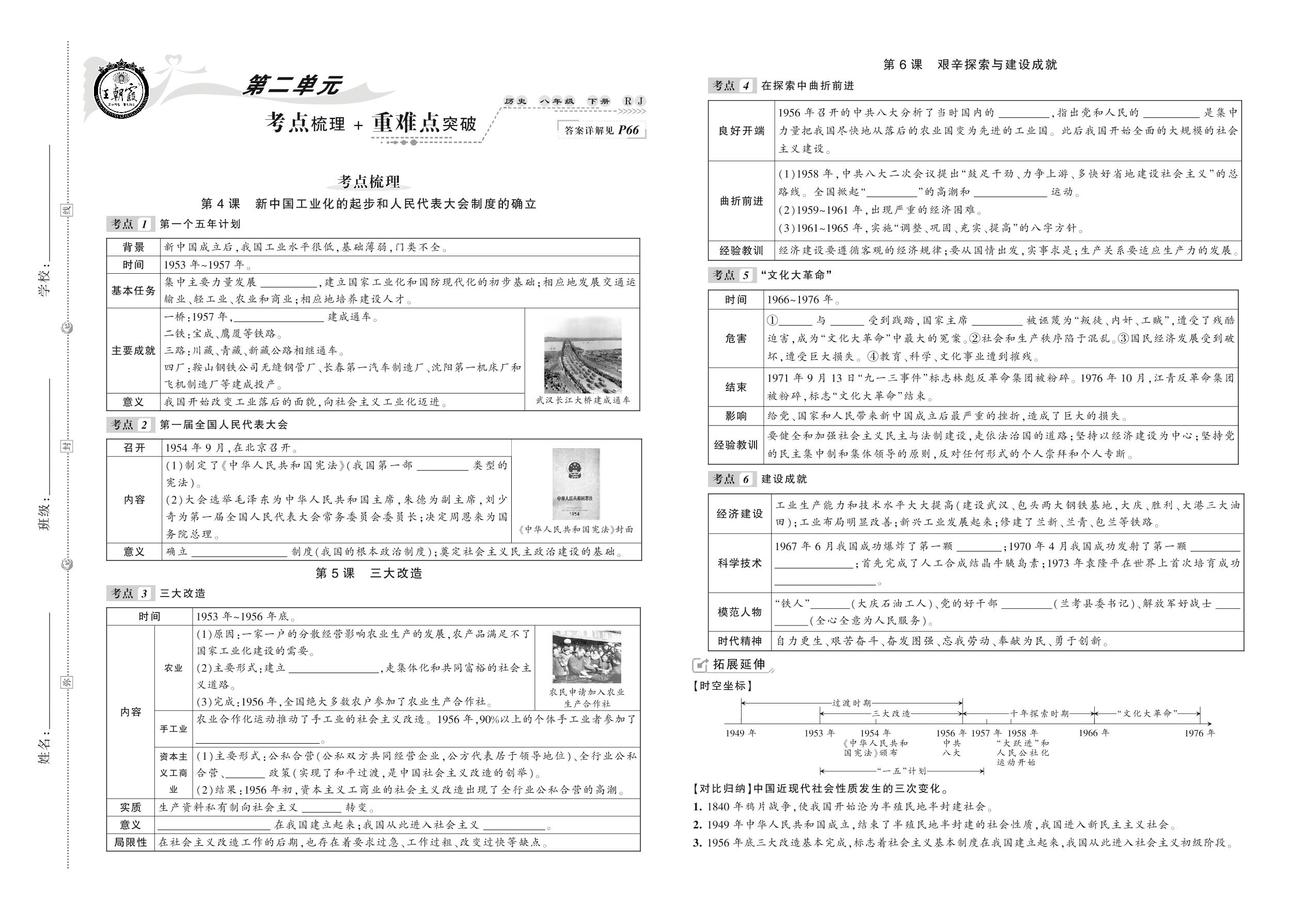 2021下册八年级历史人教版 第二单元 考点梳理+重难点突破