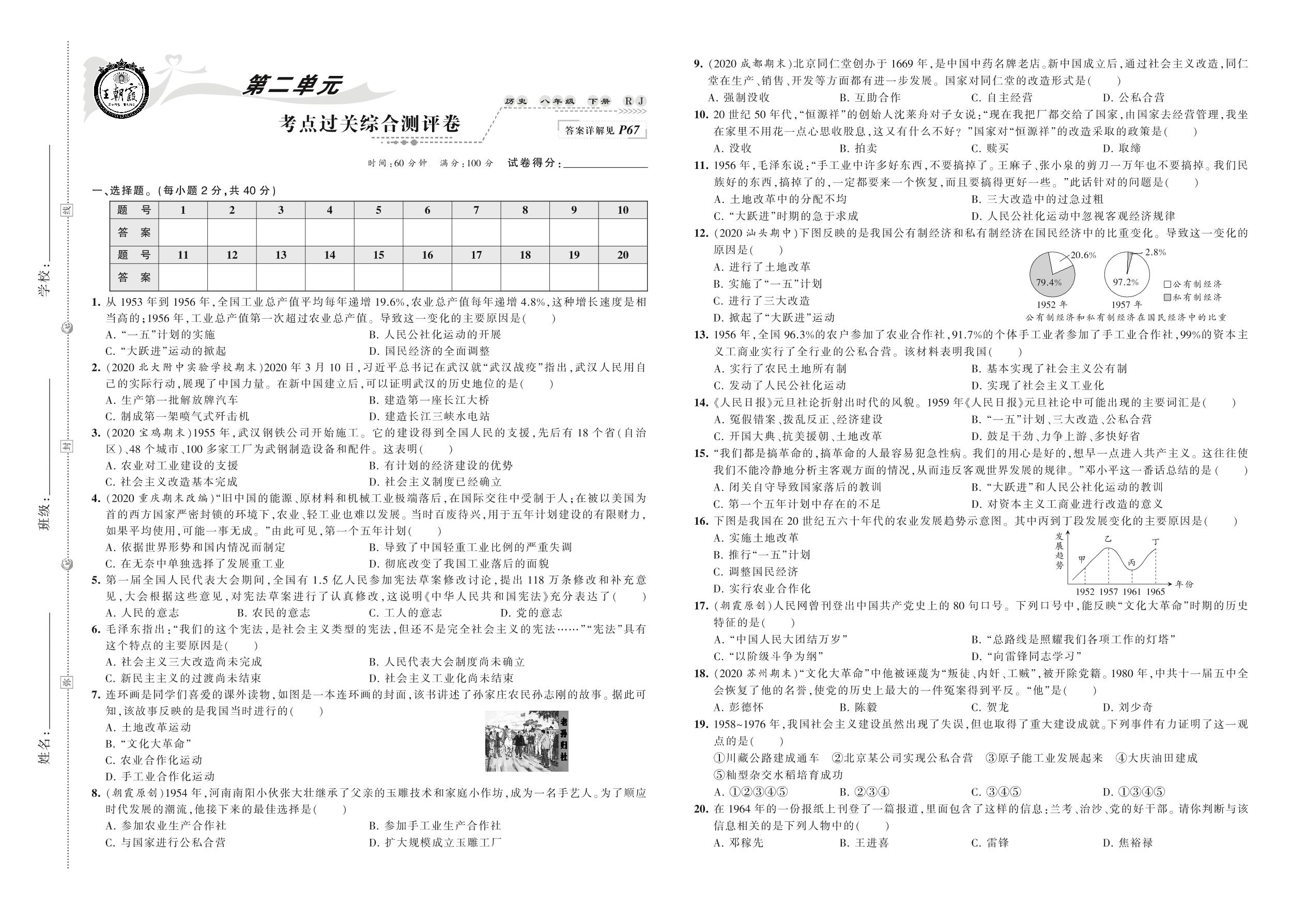 2021下册八年级历史人教版 第二单元 考点过关综合测评卷