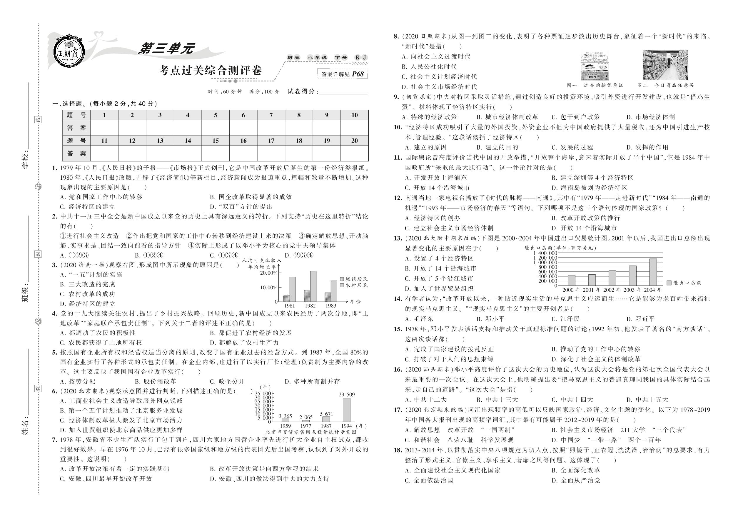 2021下册八年级历史人教版 第三单元 考点过关综合测评卷