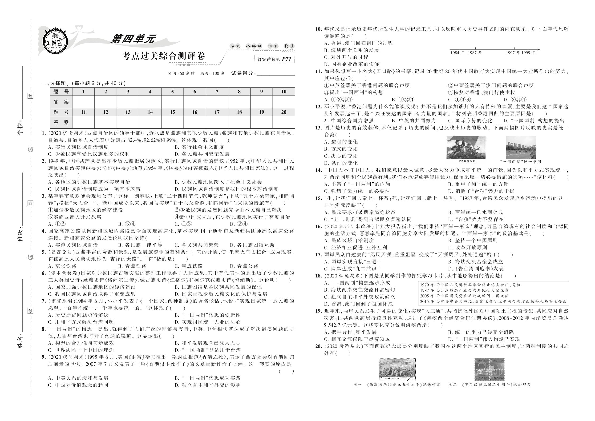 八年级历史人教版下册单元卷