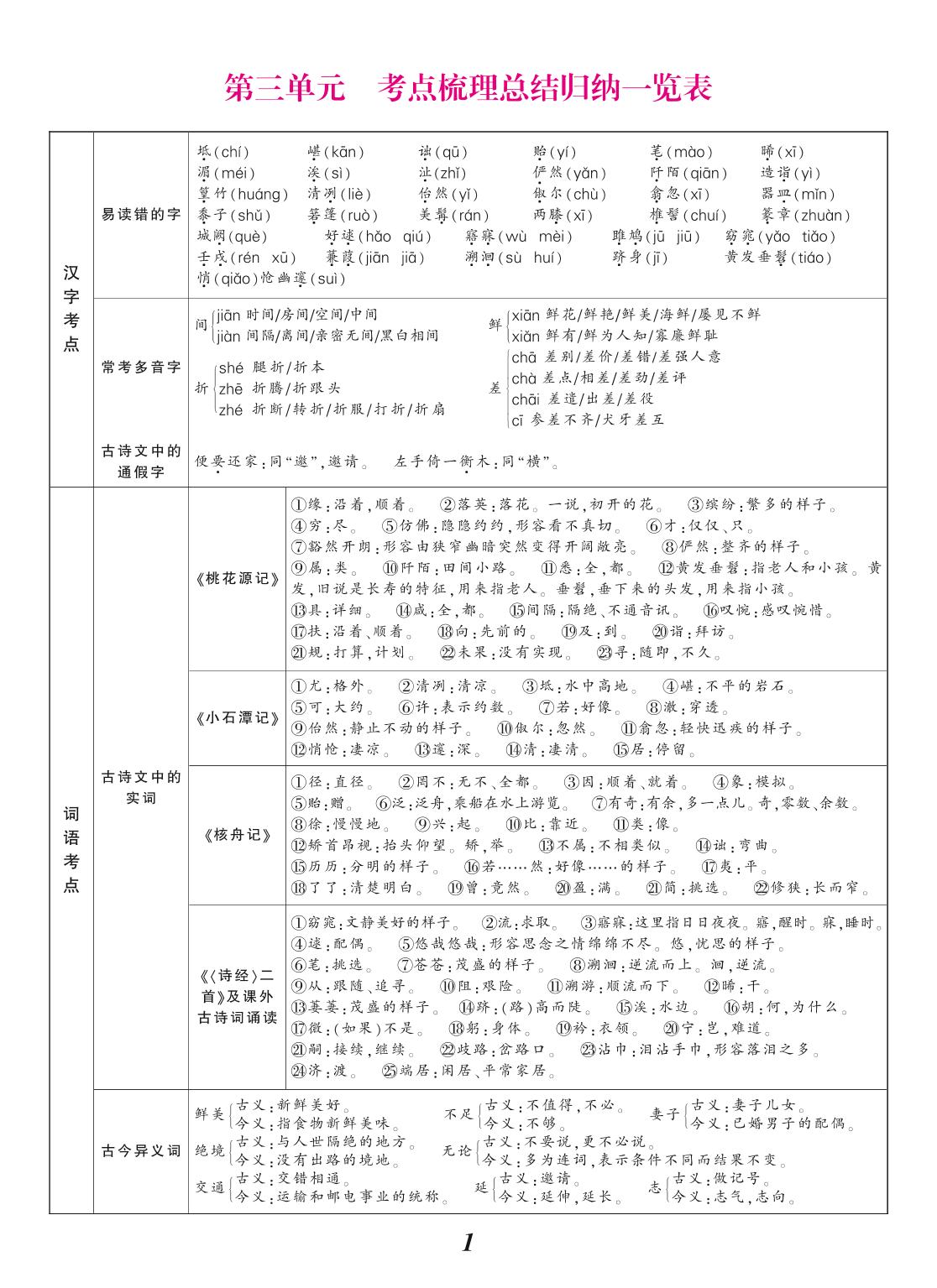 2021下册八年级语文人教版 第三单元 考点梳理总结归纳一览表