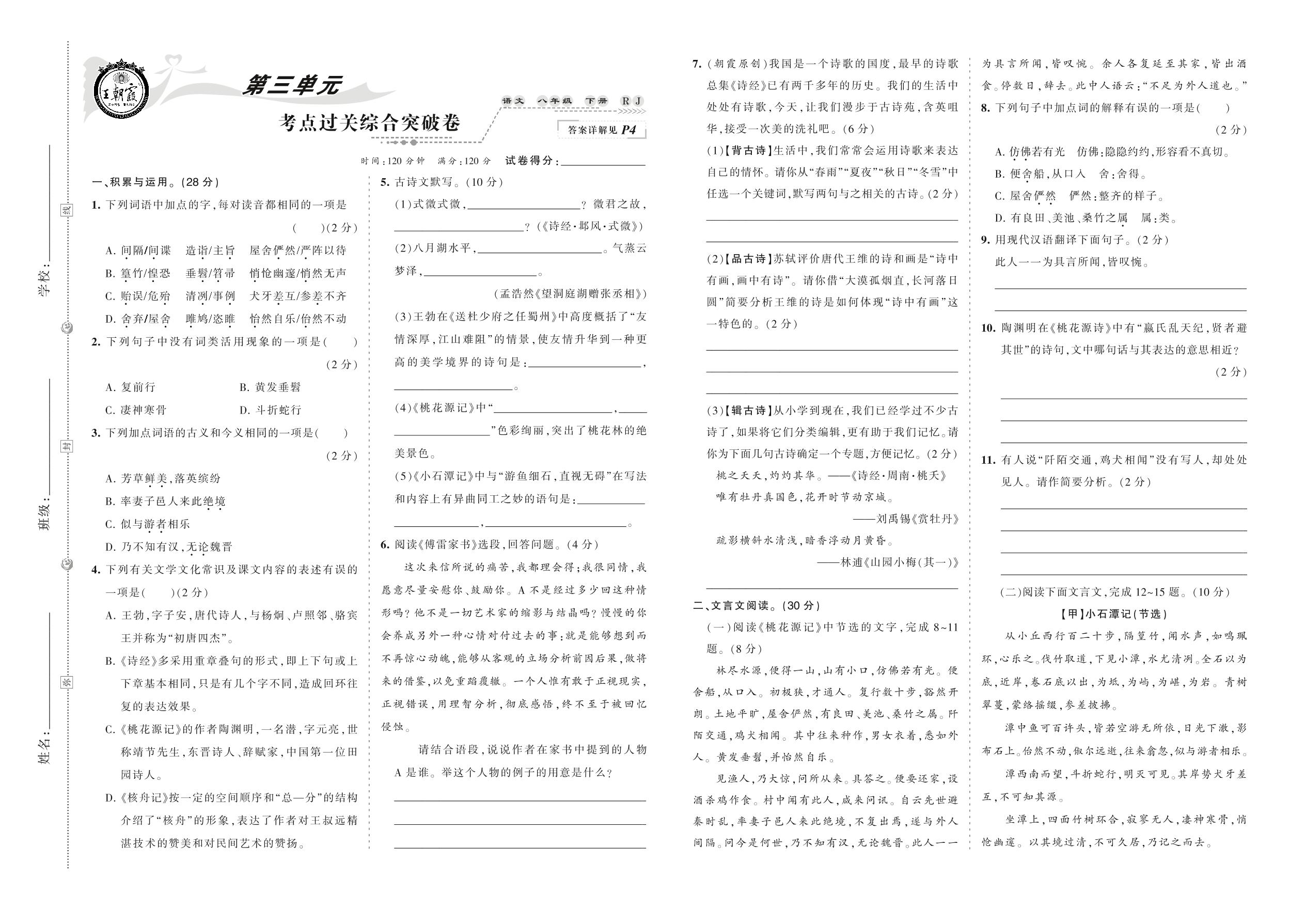 2021下册八年级语文人教版 第三单元 考点过关综合突破卷