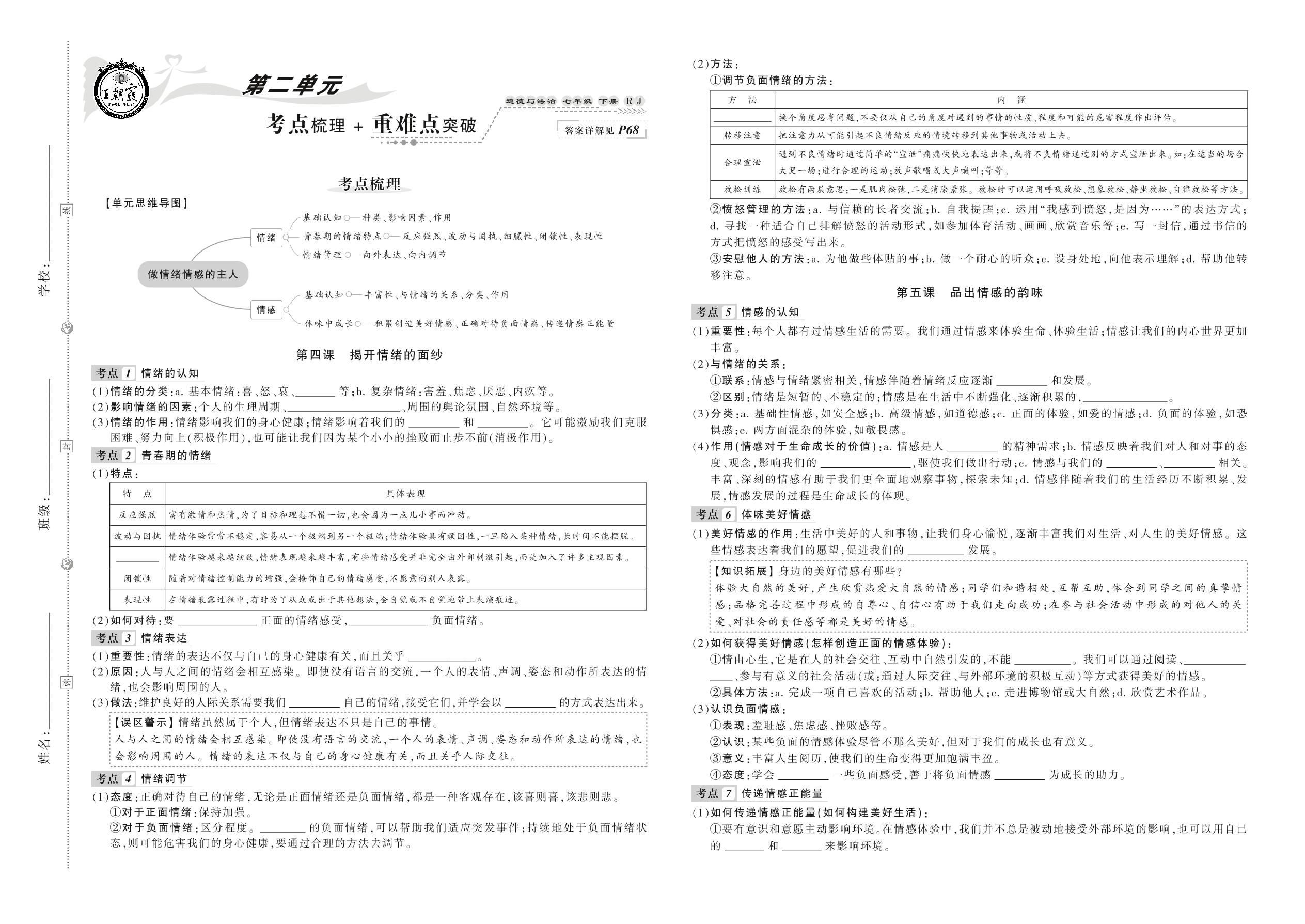 2021下册七年级道德与法治人教版 第二单元 考点梳理+重难点突破