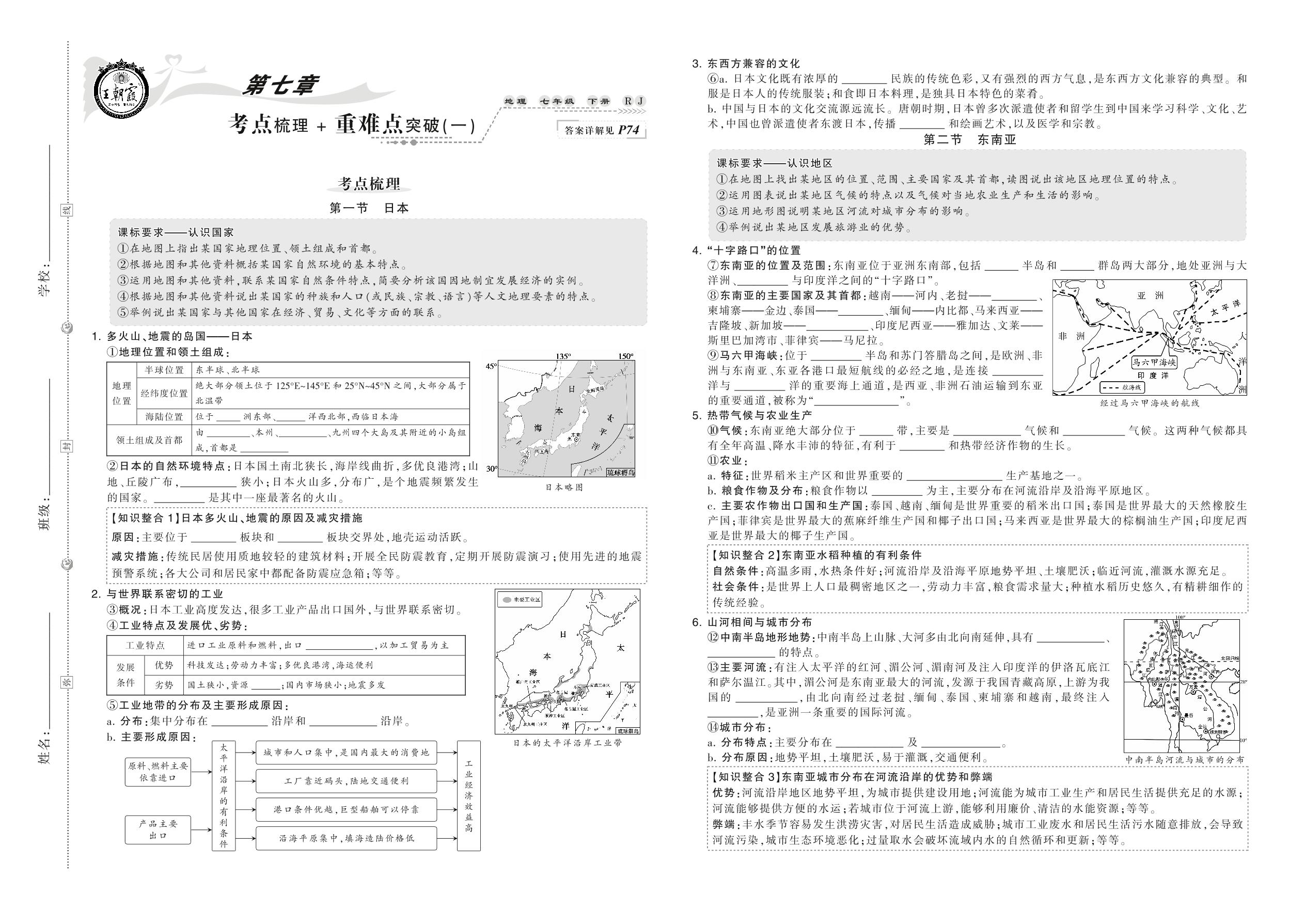 2021下册七年级地理人教版 第七章 考点梳理+重难点突破(一)