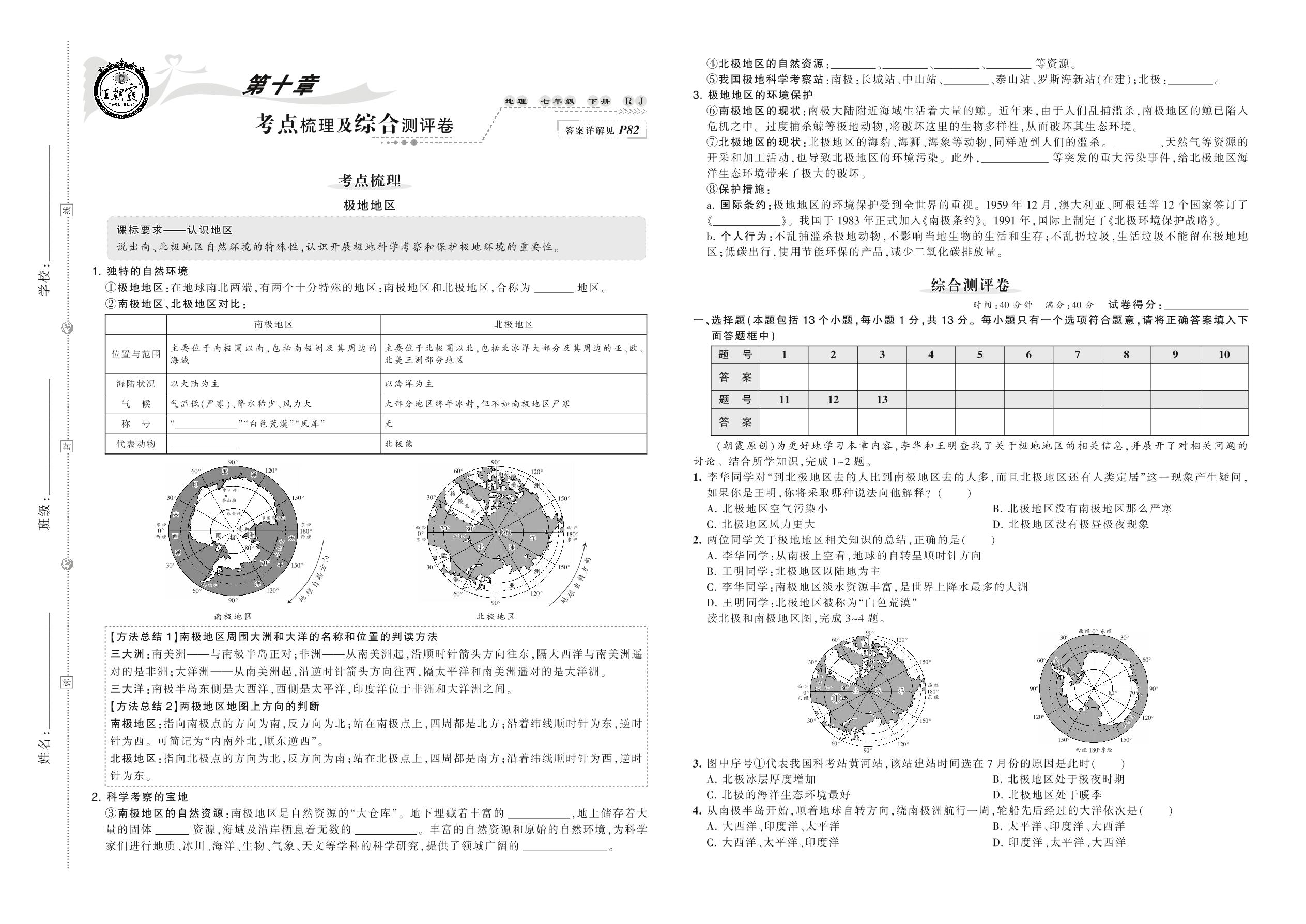 2021下册七年级地理人教版 第十章 考点梳理及综合测评卷