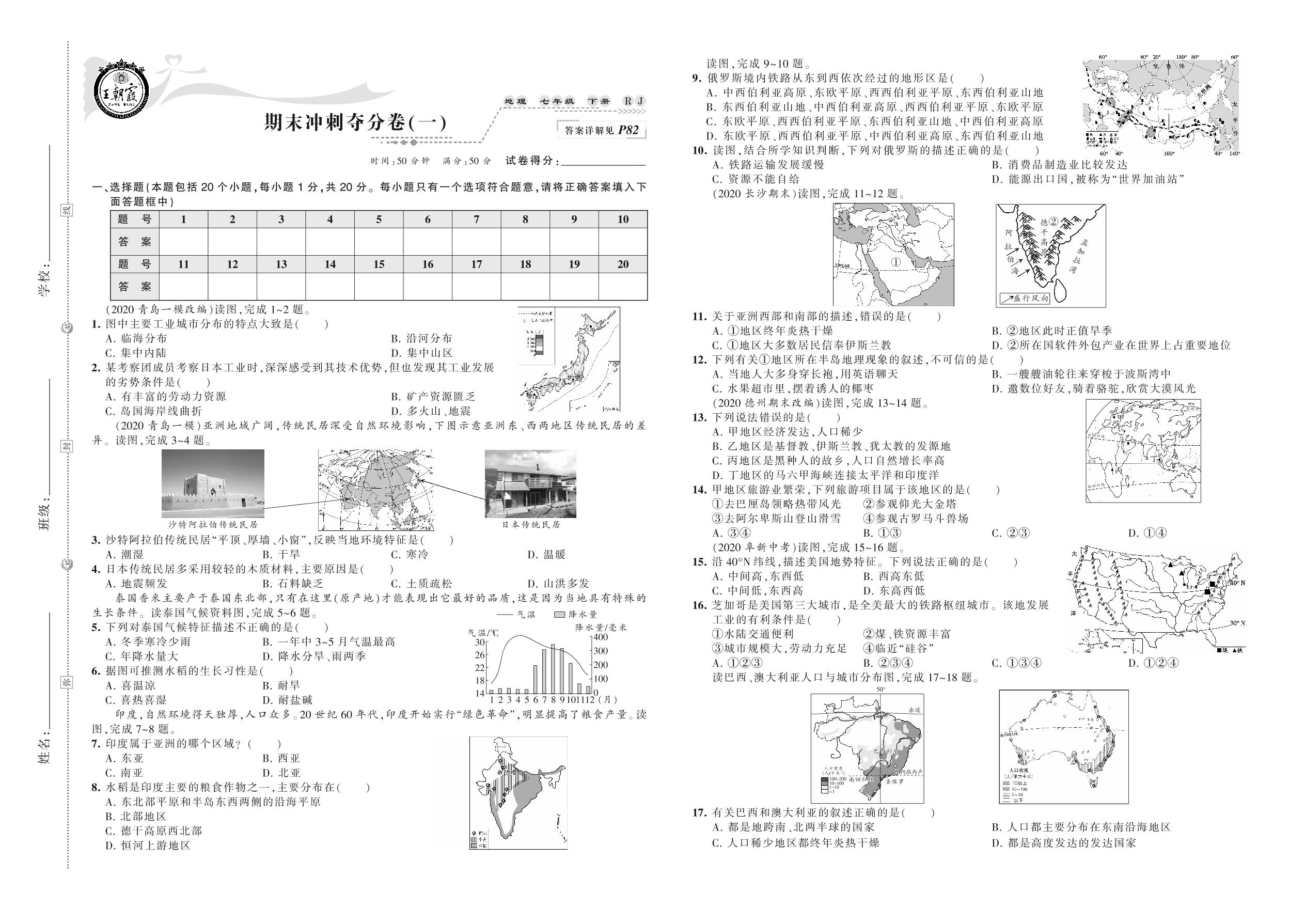 2021下册七年级地理人教版 期末冲刺夺分卷(一)