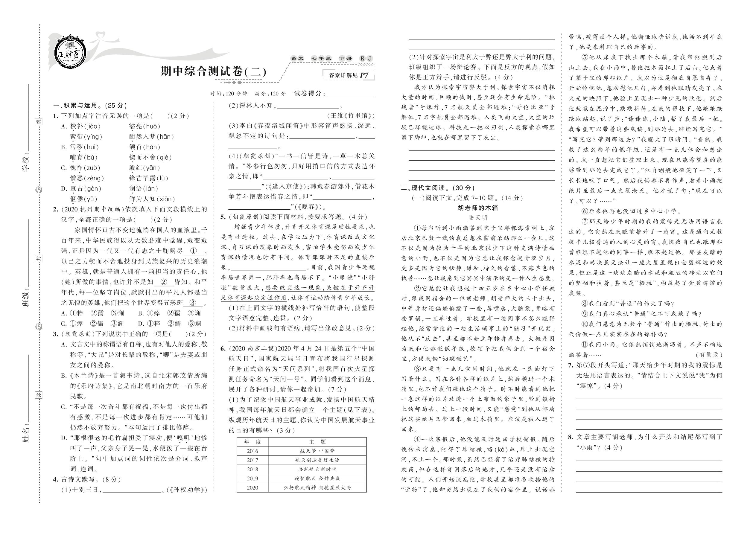 2021下册七年级语文人教版 期中综合测试卷(二)