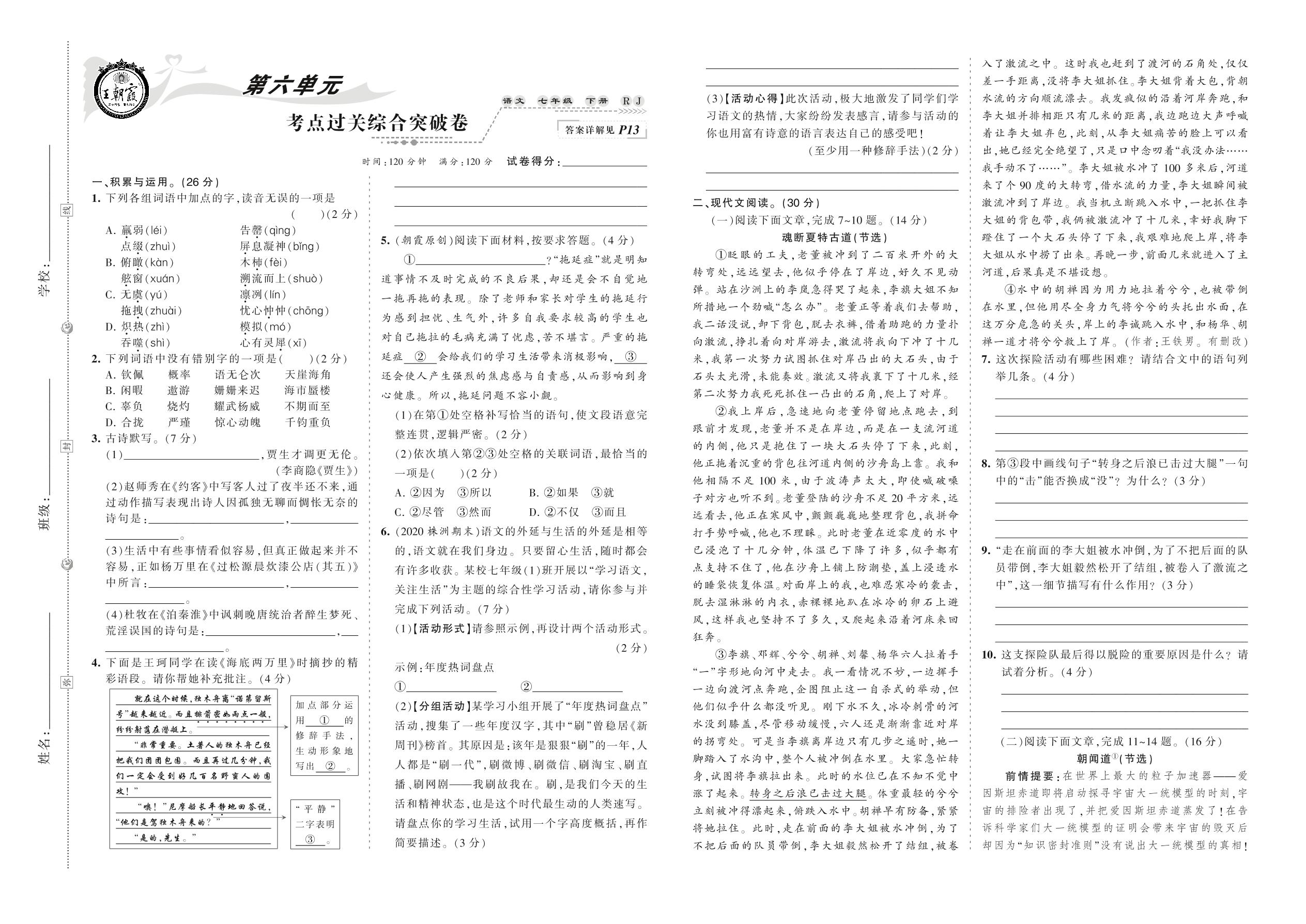2021下册七年级语文人教版 第六单元 考点过关综合突破卷