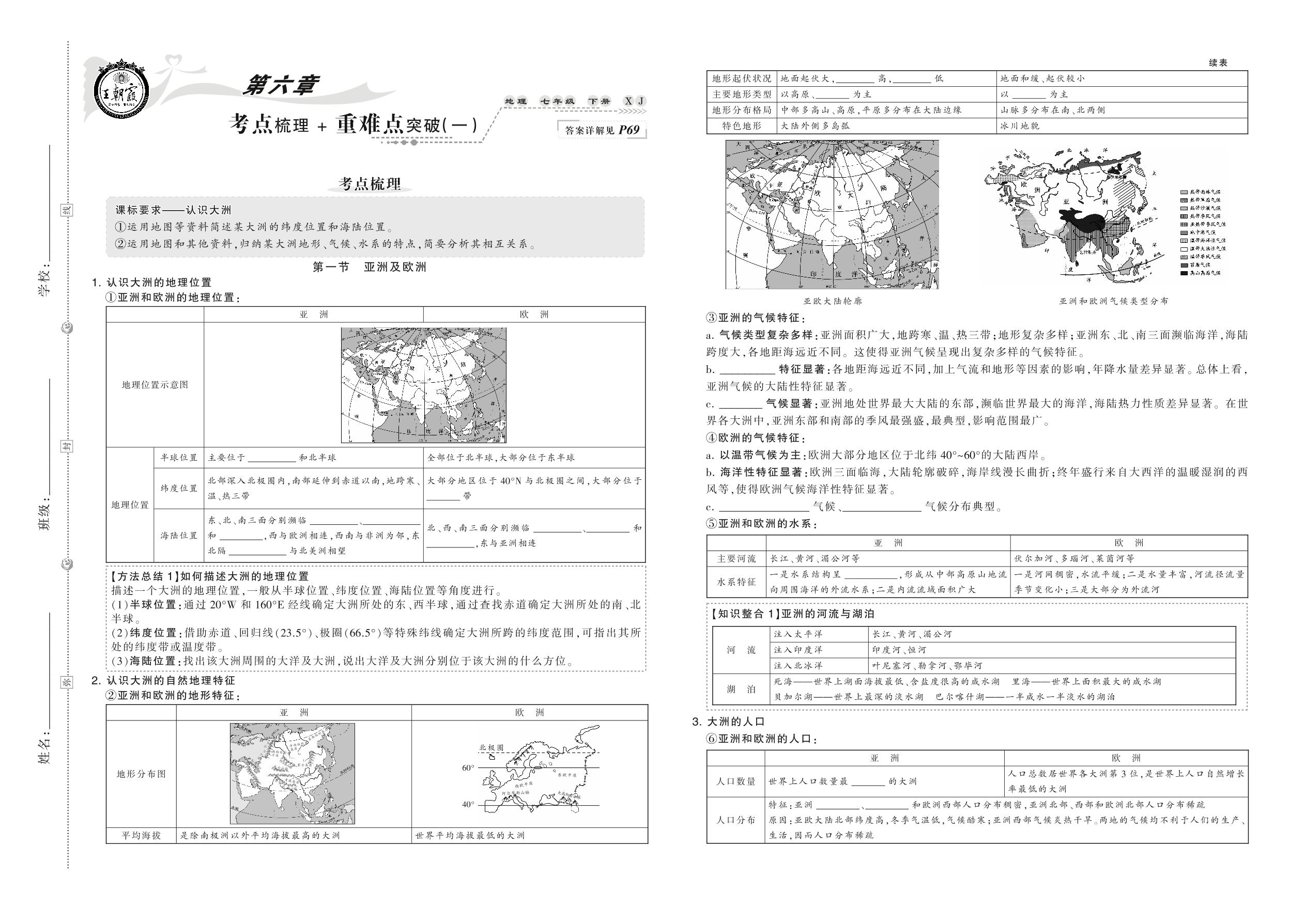 2021下册七年级地理湘教版 第六章 考点梳理+重难点突破(一)
