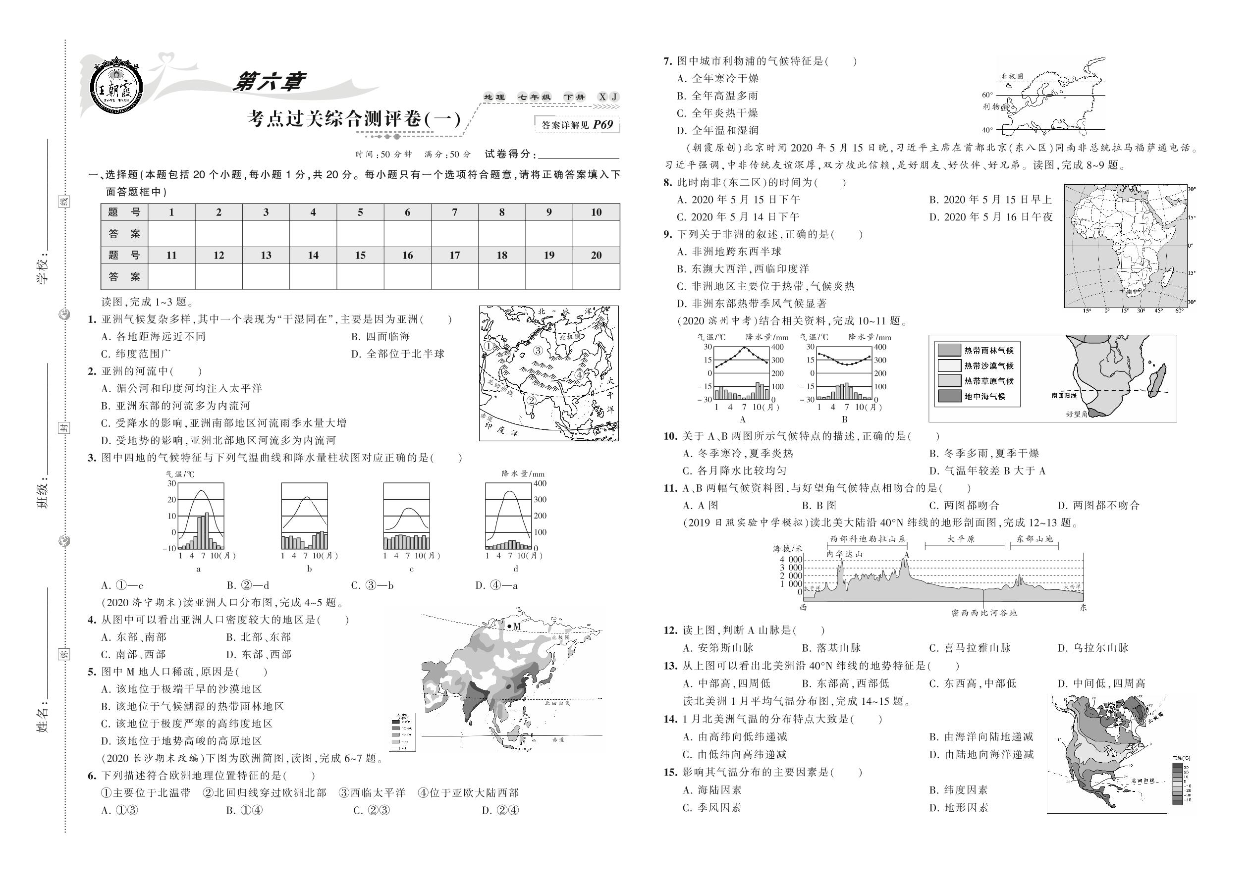 2021下册七年级地理湘教版 第六章 考点过关综合测评卷(一)