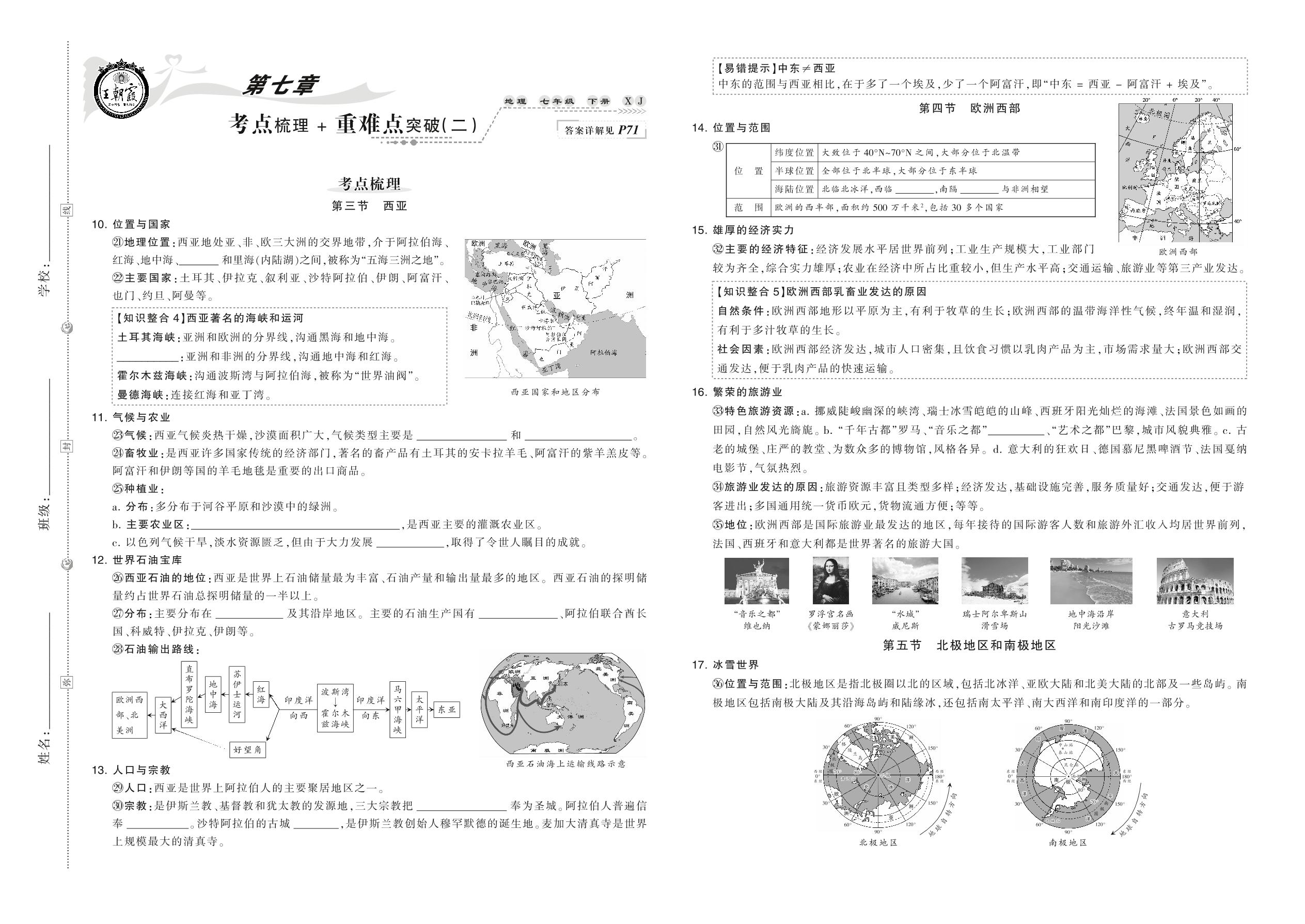 2021下册七年级地理湘教版 第七章 考点梳理+重难点突破(二)