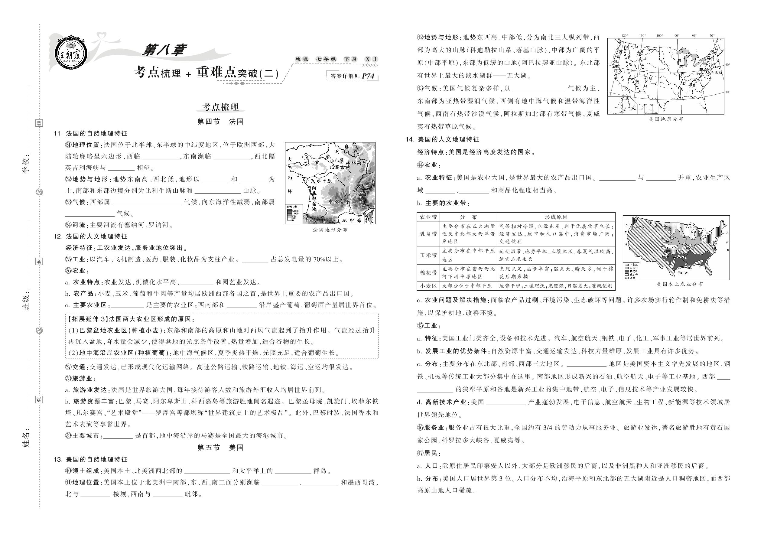 2021下册七年级地理湘教版 第八章 考点梳理+重难点突破(二)