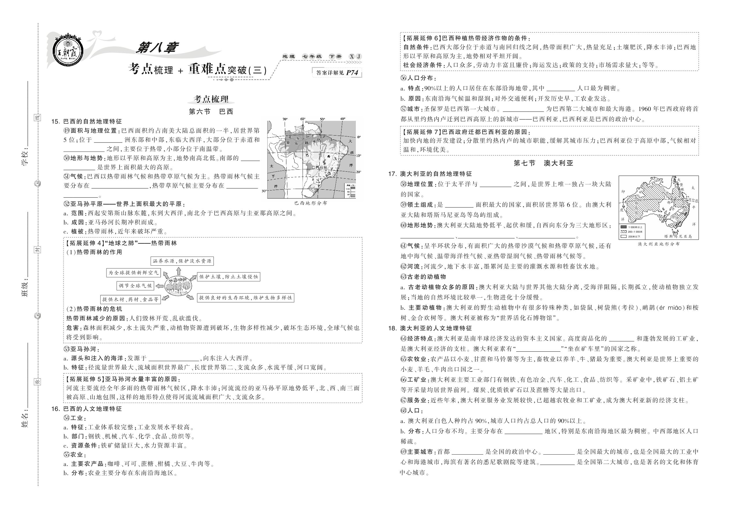 2021下册七年级地理湘教版 第八章 考点梳理+重难点突破(三)