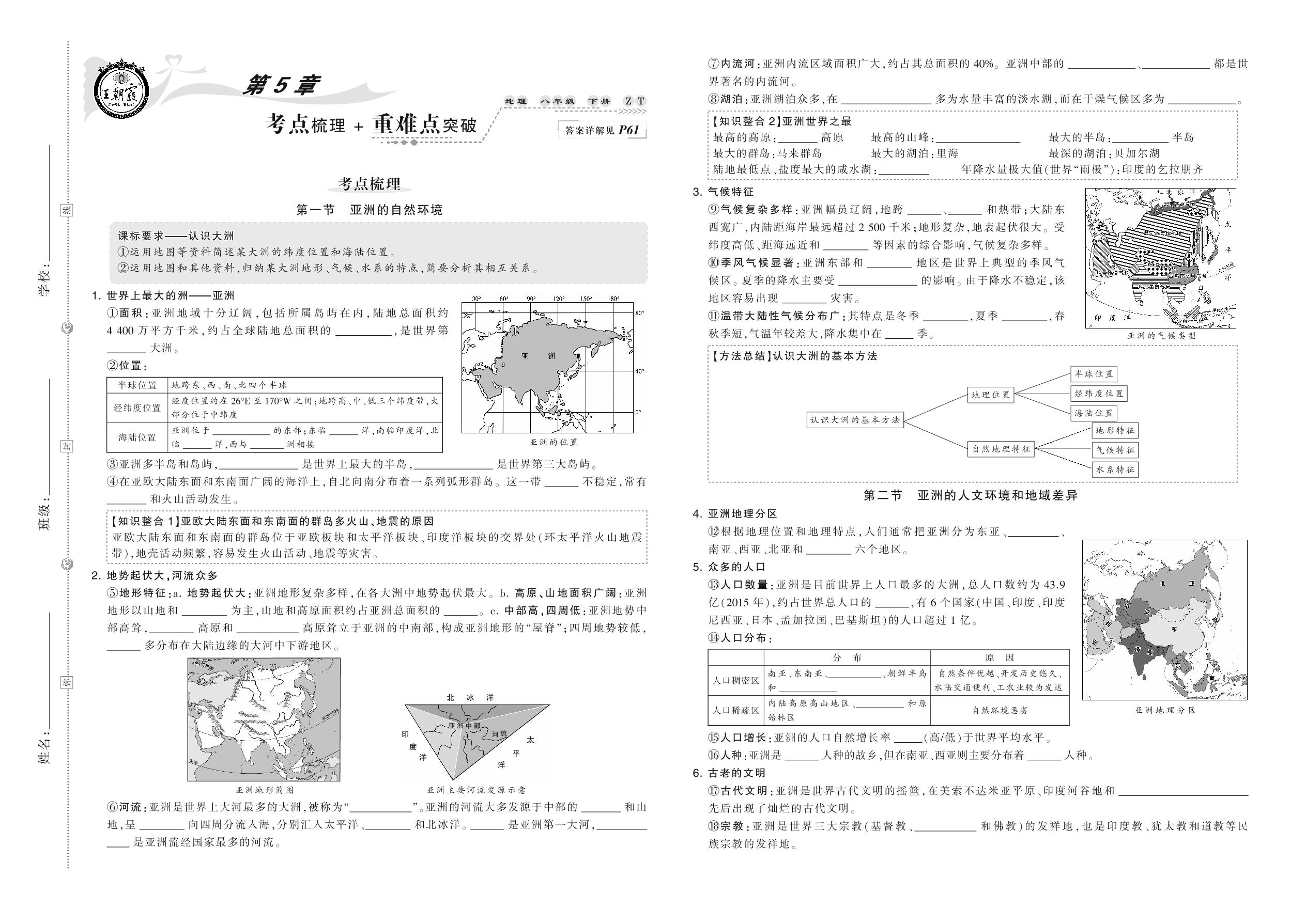 2021下册八年级地理中图版 第5章 考点梳理+重难点突破