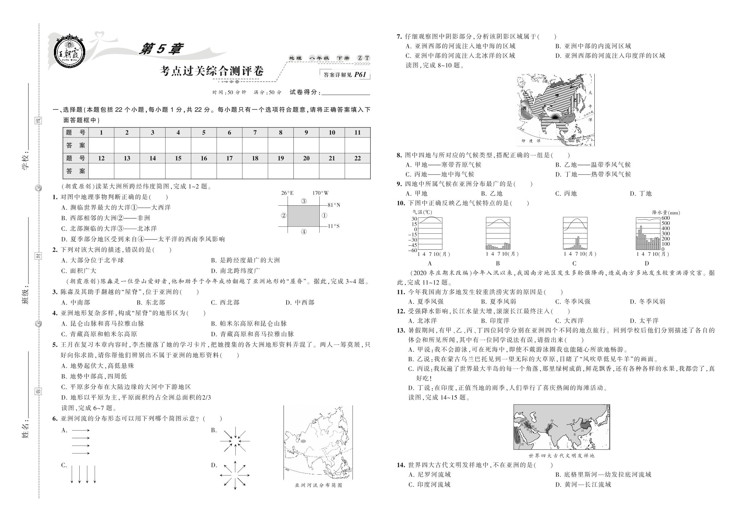 2021下册八年级地理中图版 第5章 考点过关综合测评卷
