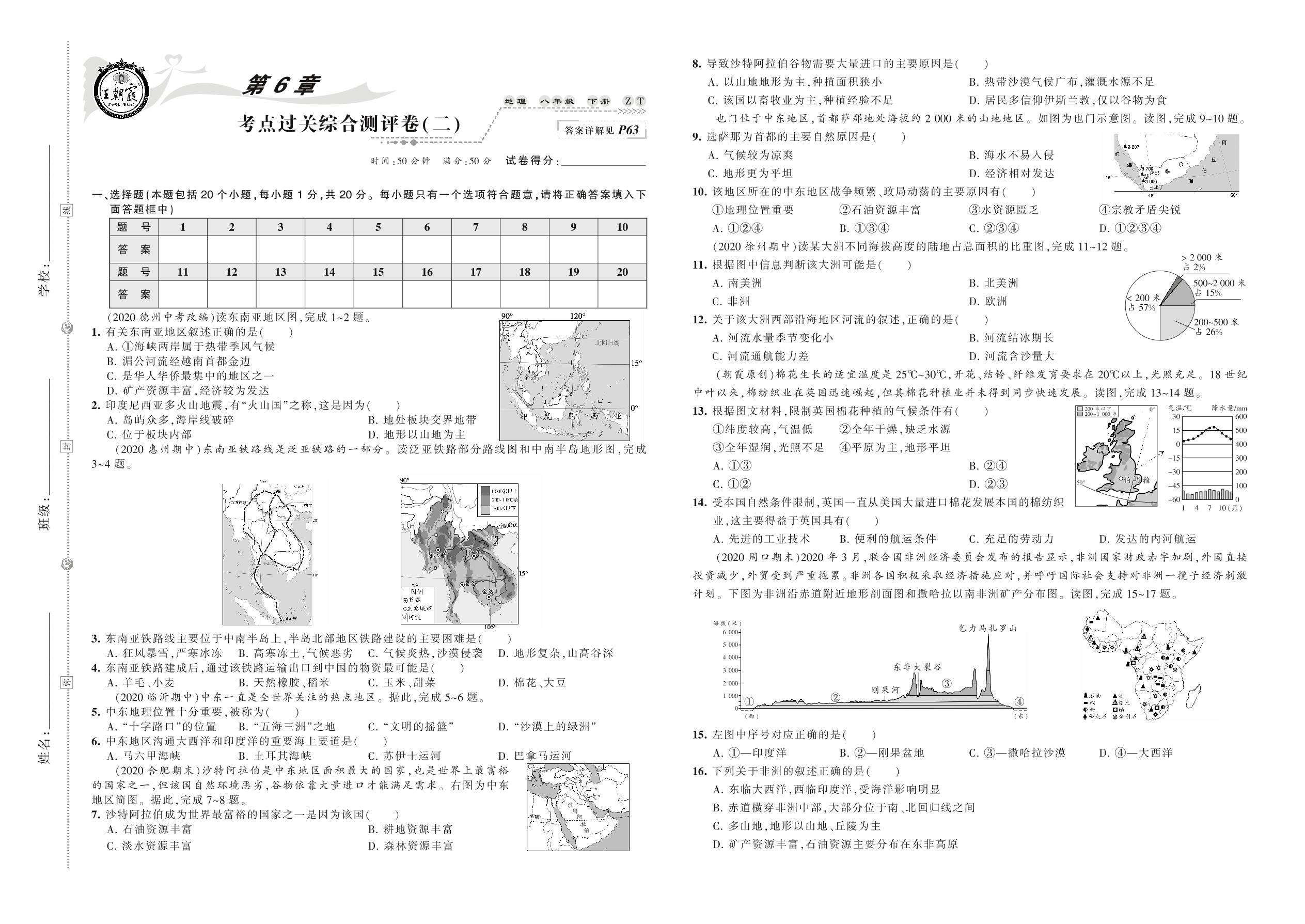 2021下册八年级地理中图版 第6章 考点过关综合测评卷(二)