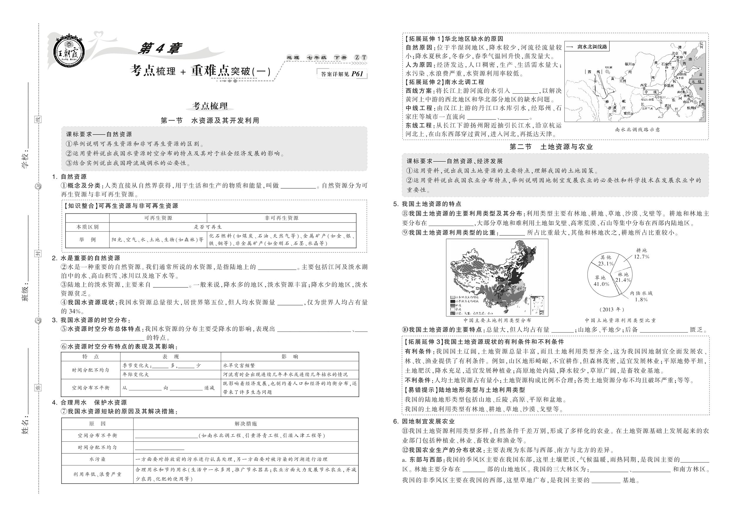 2021下册七年级地理中图版 第4章 考点梳理+重难点突破(一)